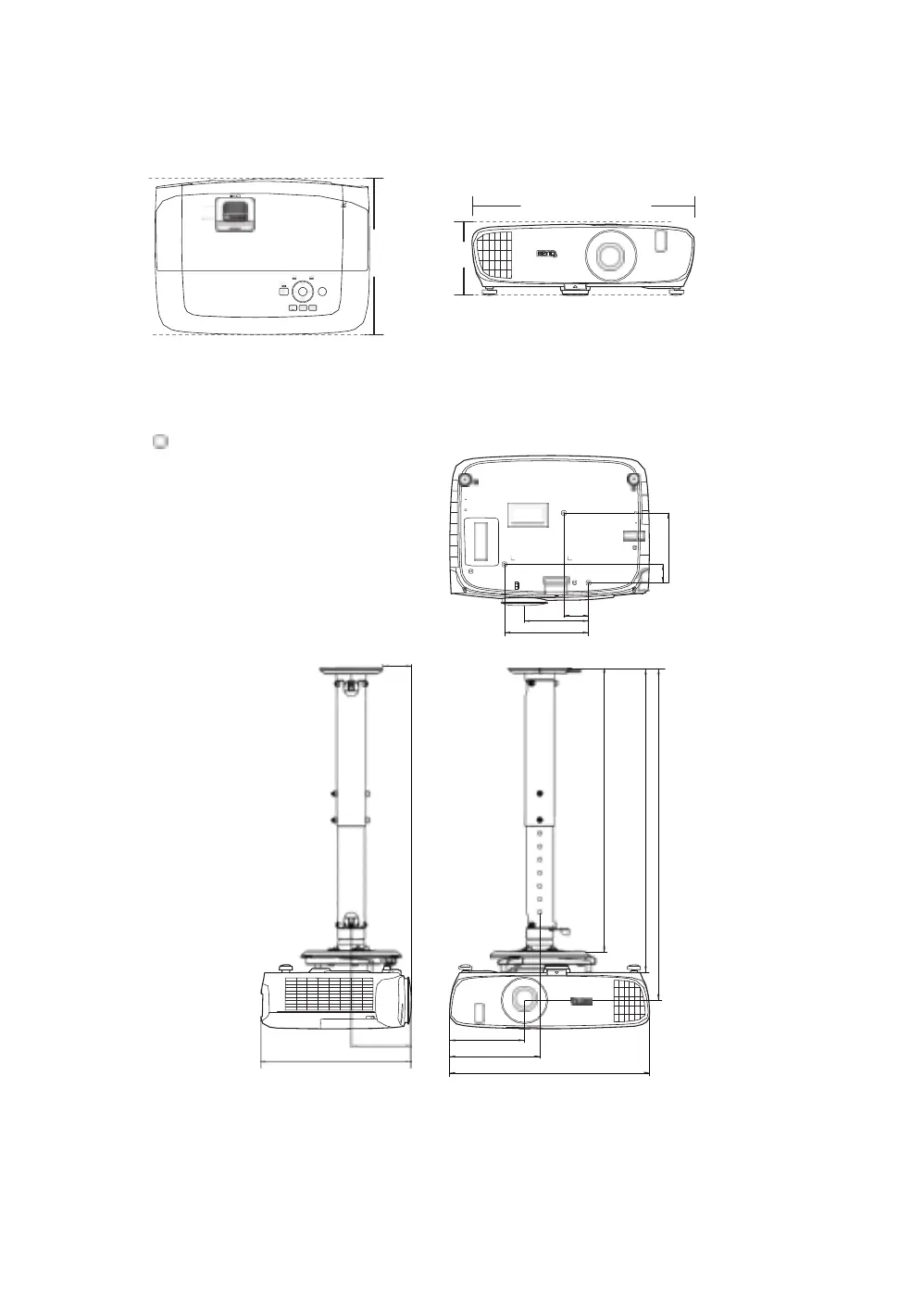 BenQ W2000+ - Dimensions and Mounting Information; Projector Dimensions; Ceiling Mount Installation Details