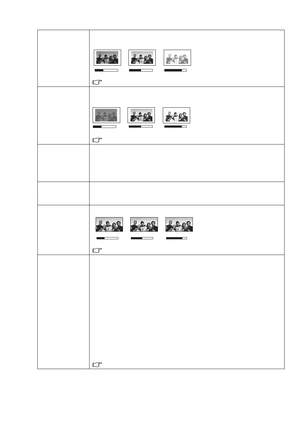 Adjusts the brightness of the picture. When adjusting this control, the black areas of