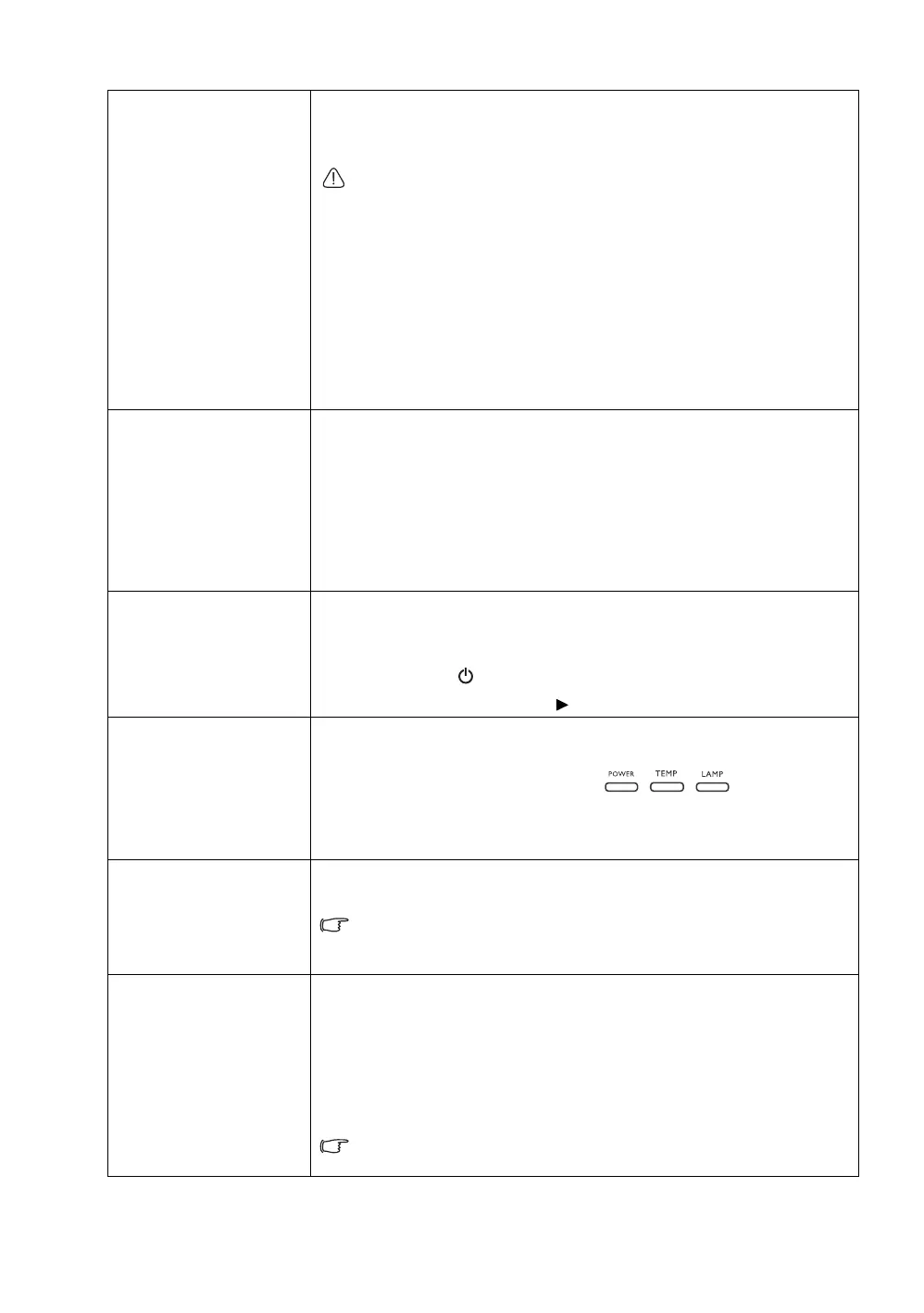 projector is not working properly, the LED indicators light or flash to remind