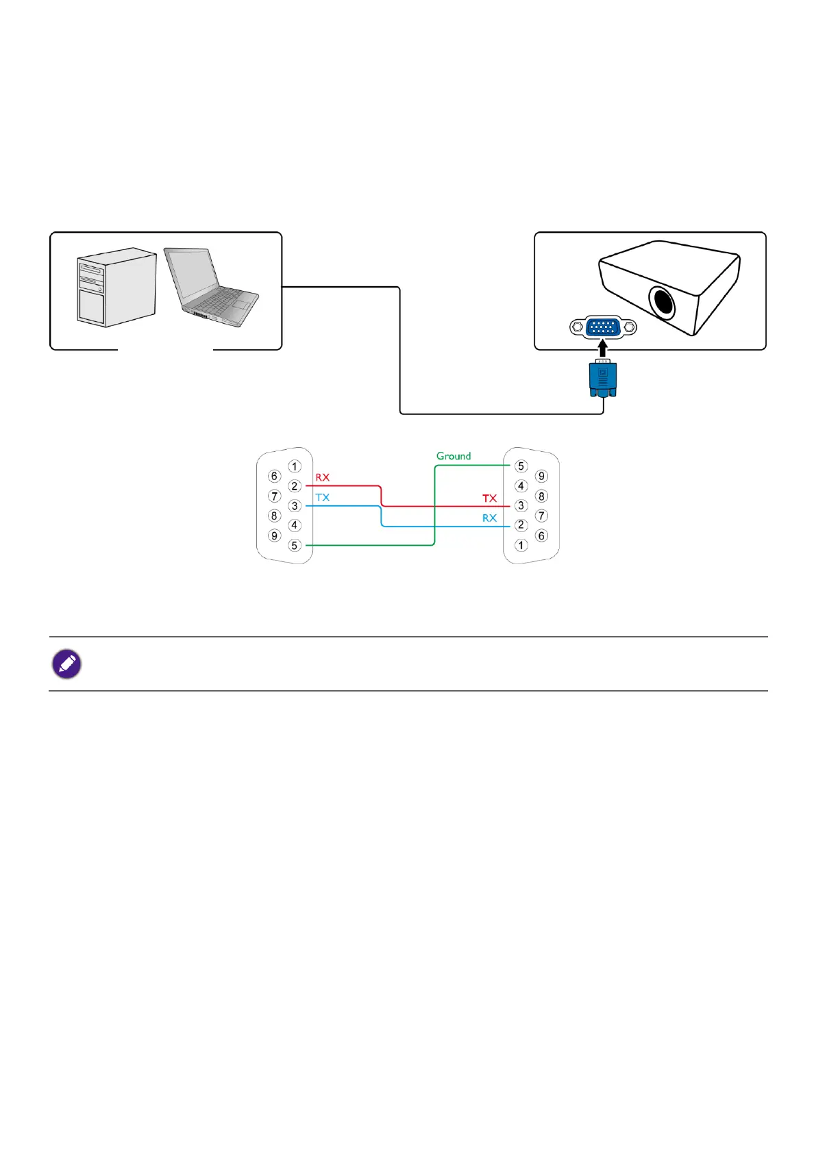 BenQ W2710 - Connections and communication settings; RS232 serial port with crossover cable
