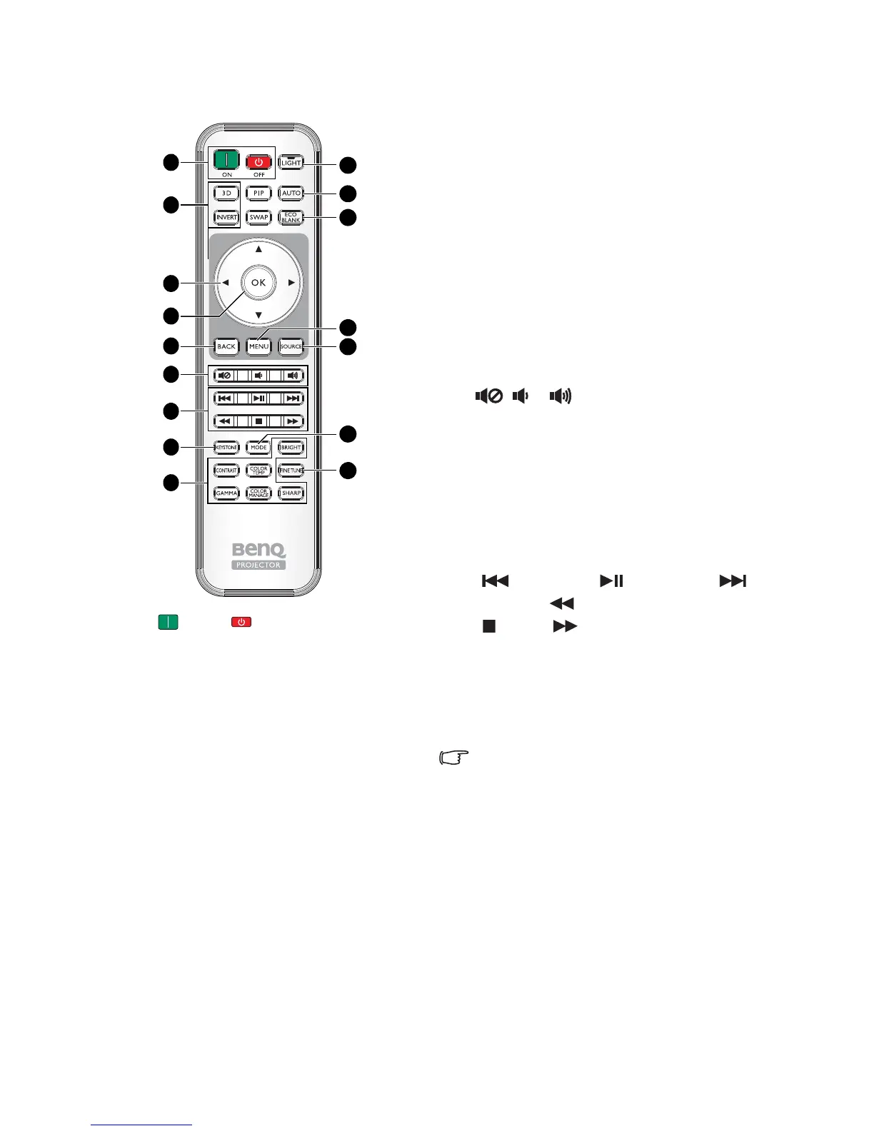 • Mute: Toggles projector audio