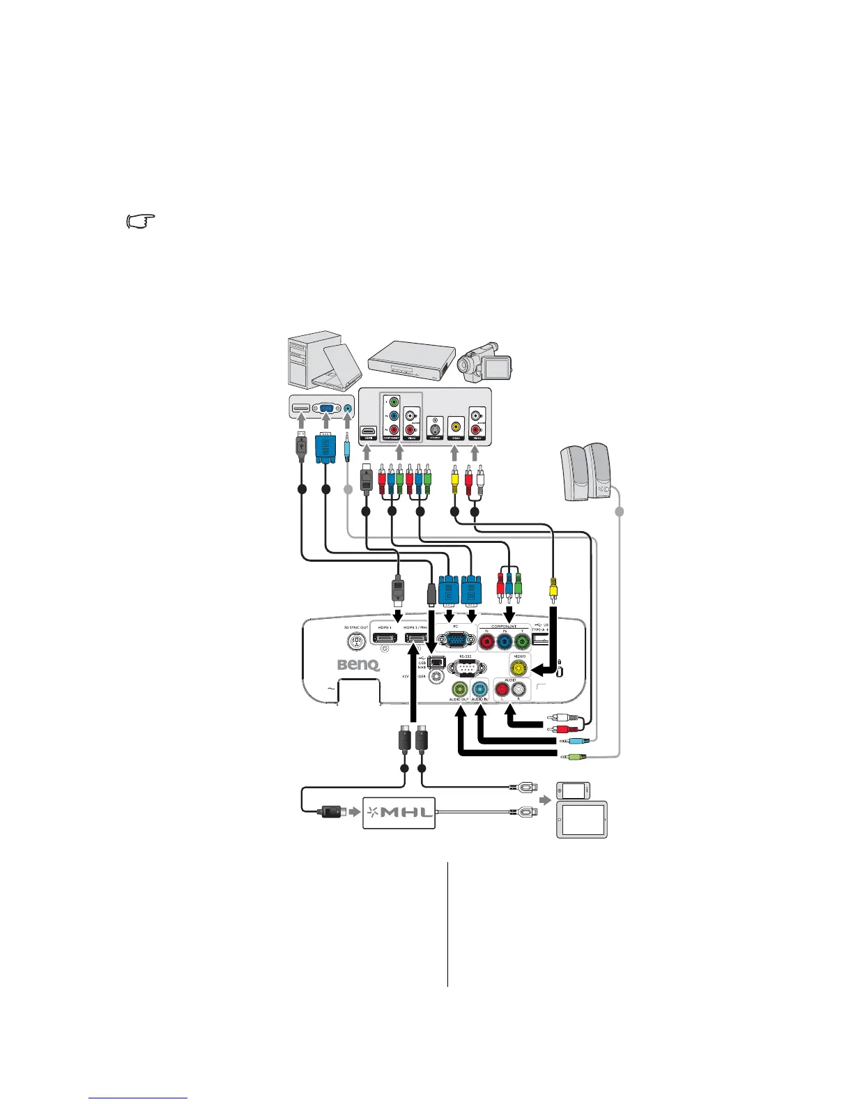 • The connection illustrations below are for reference only. The rear connecting jacks