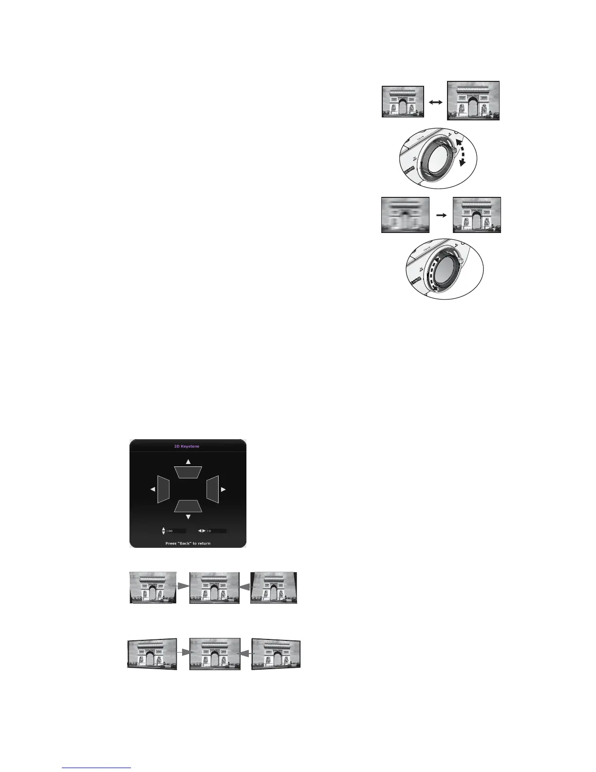 the top or bottom. It occurs when the projector is not perpendicular to the screen.