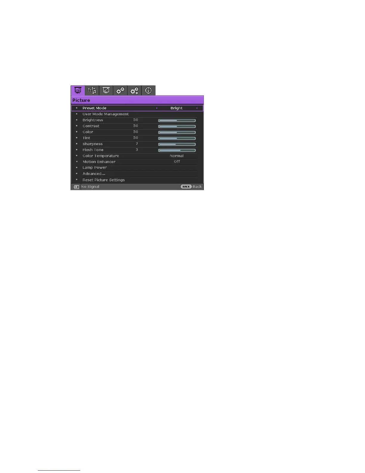 Next time when you turn on the projector, you may access the Basic OSD menu by