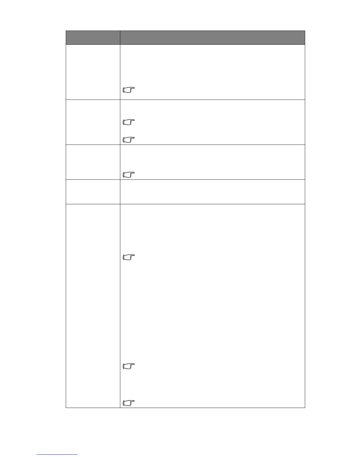 • The brightness level of the projected image decreases.