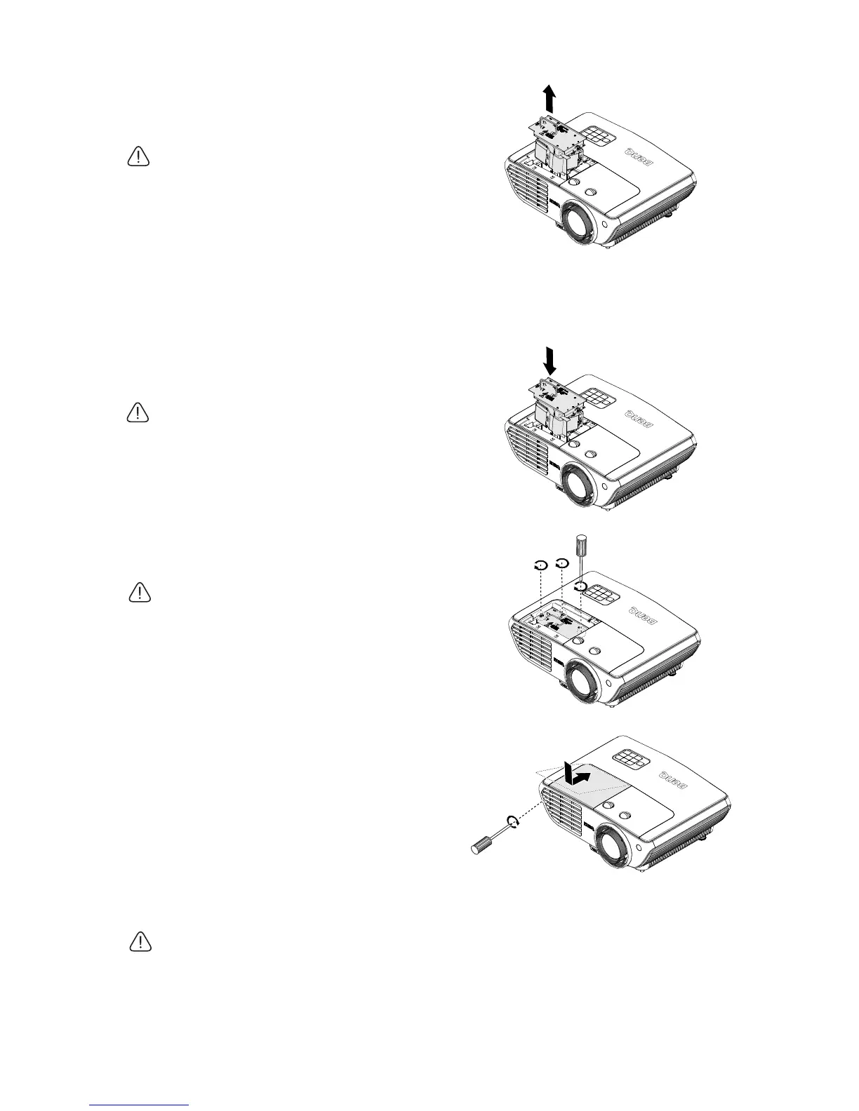 7. Tighten the screws that secure the lamp.