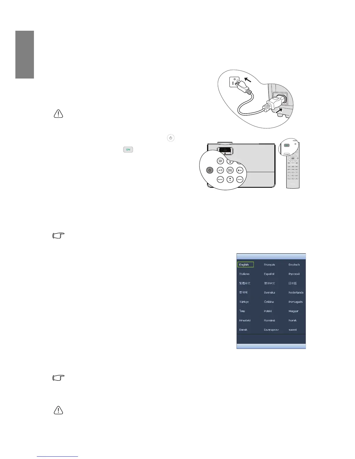 Starting up the projector