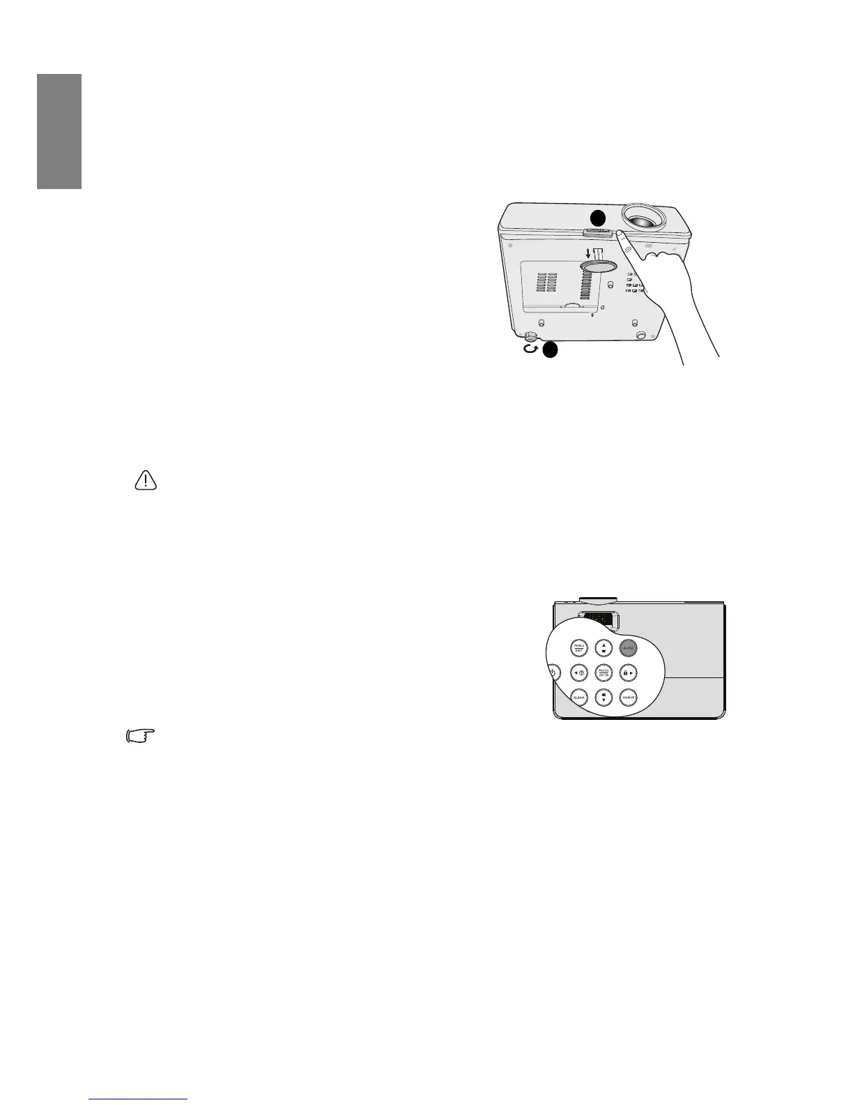 adjusters change the image height and projection angle. To adjust the projector: