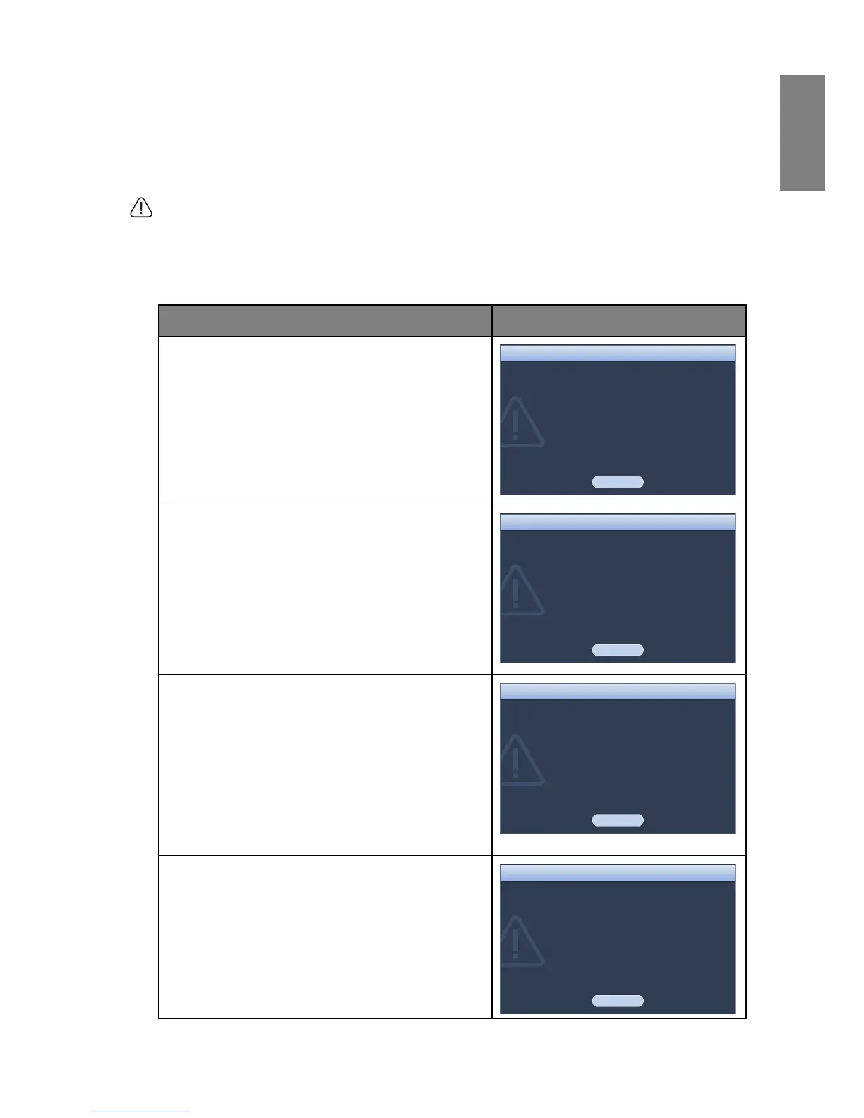 The following lamp warning displays will remind you to change the lamp.