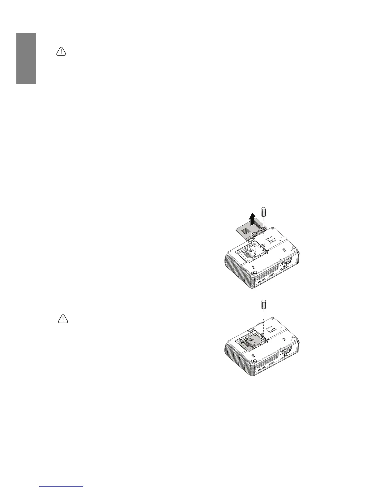 the lens, do not touch the empty lamp compartment when the lamp is removed.
