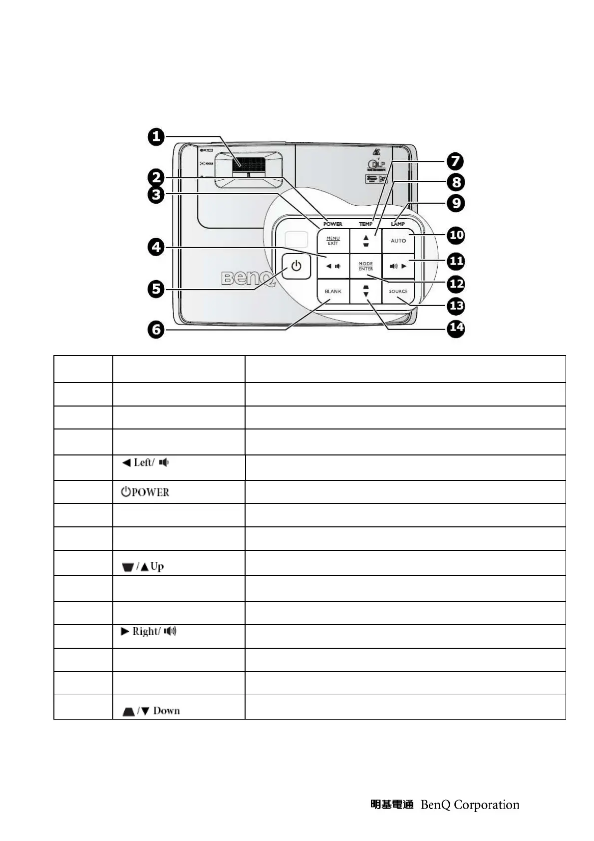 Indicates the status of the lamp. Light up or flashes when the lamp has