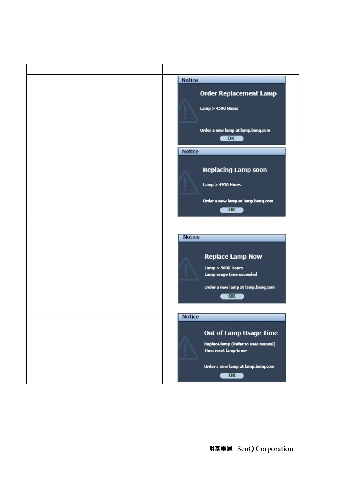 out of lamp time.