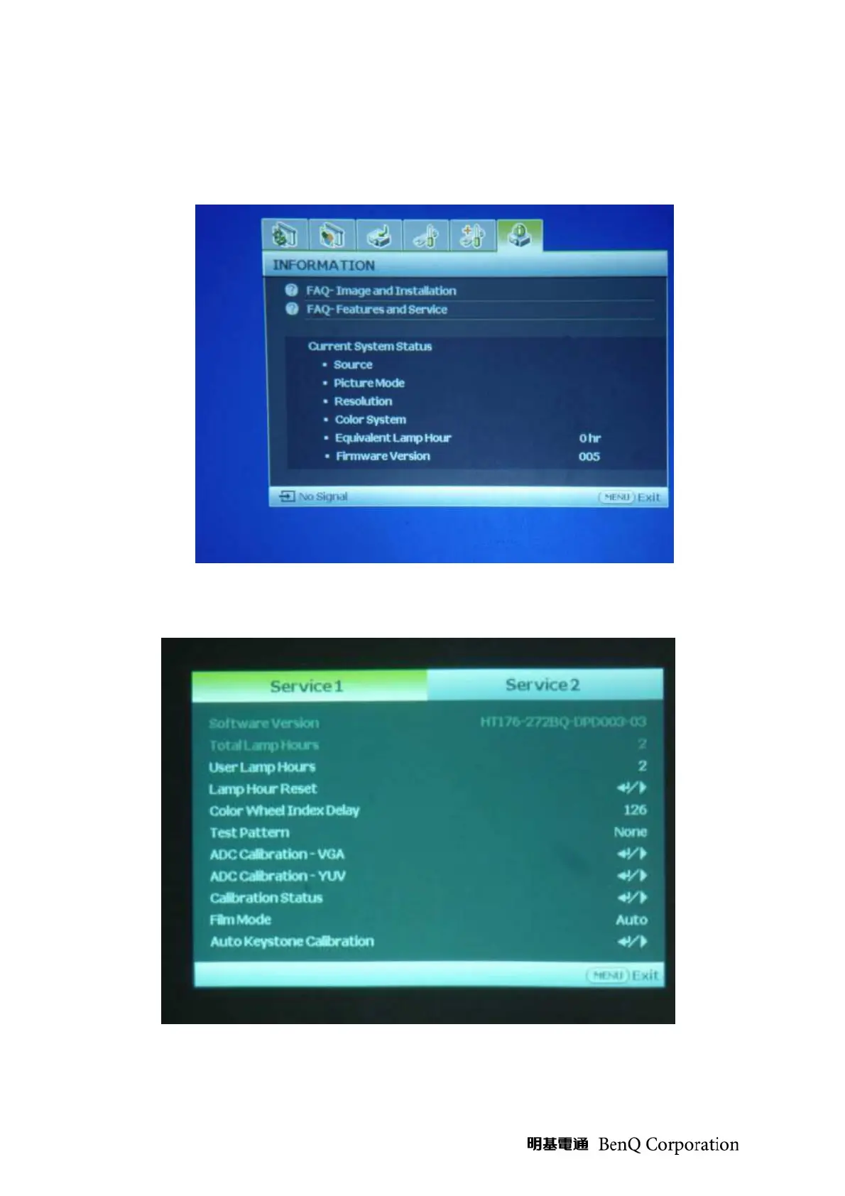 BenQ W700 - Steps to Enter Service Mode