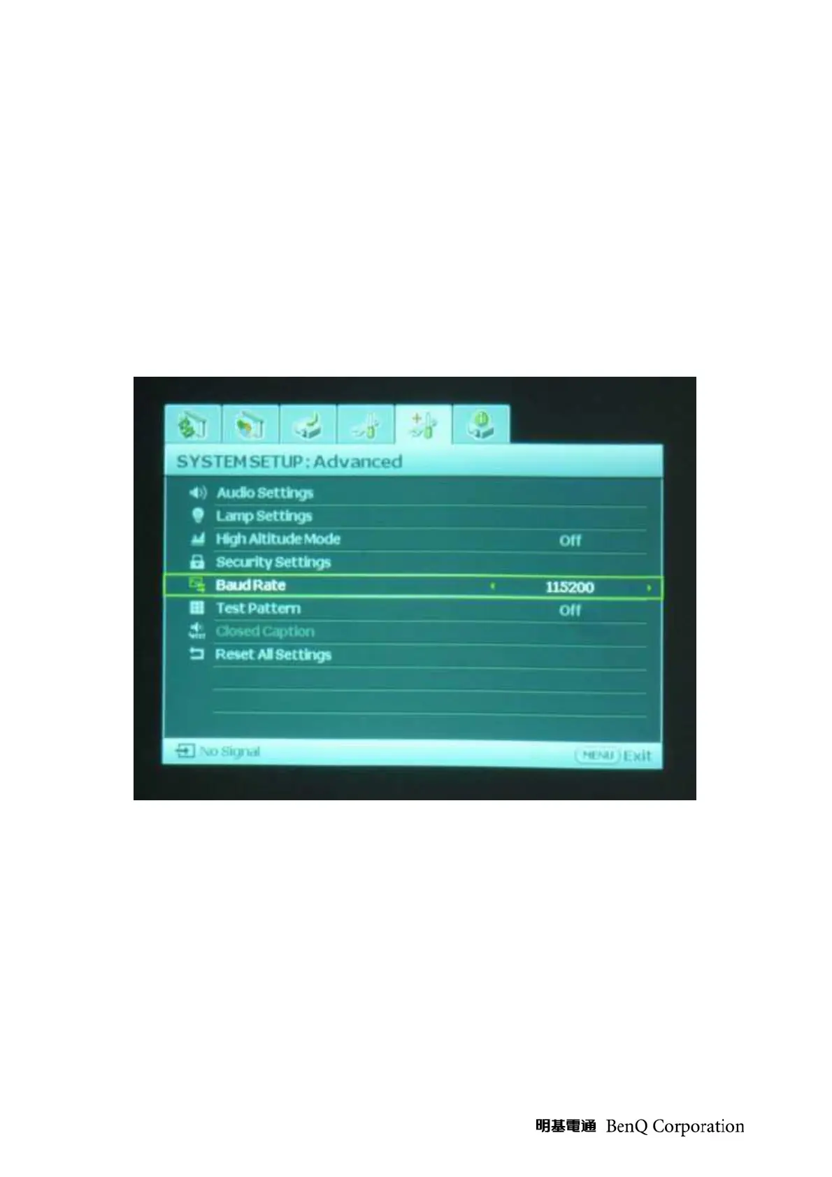 3.Press the cursor ▲▼ button to move down to “Baud Rate”.