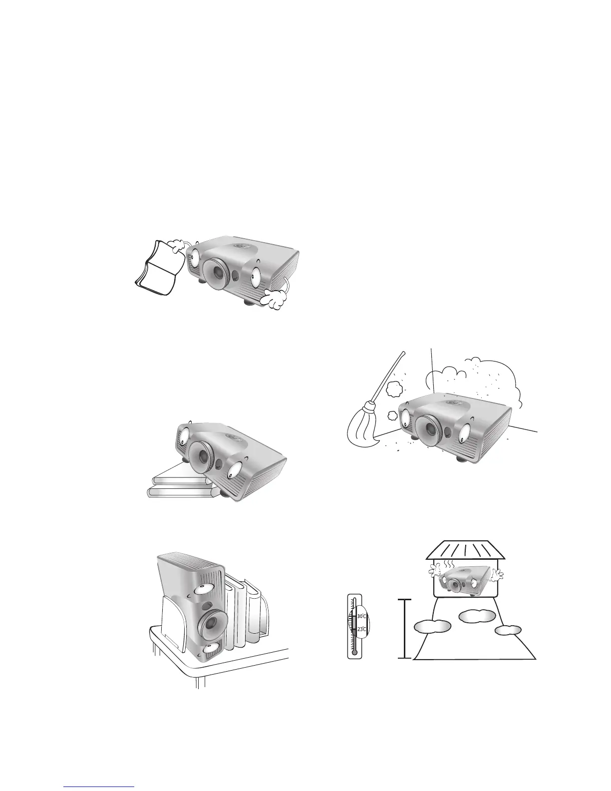 4. Do not place the projector in any of the