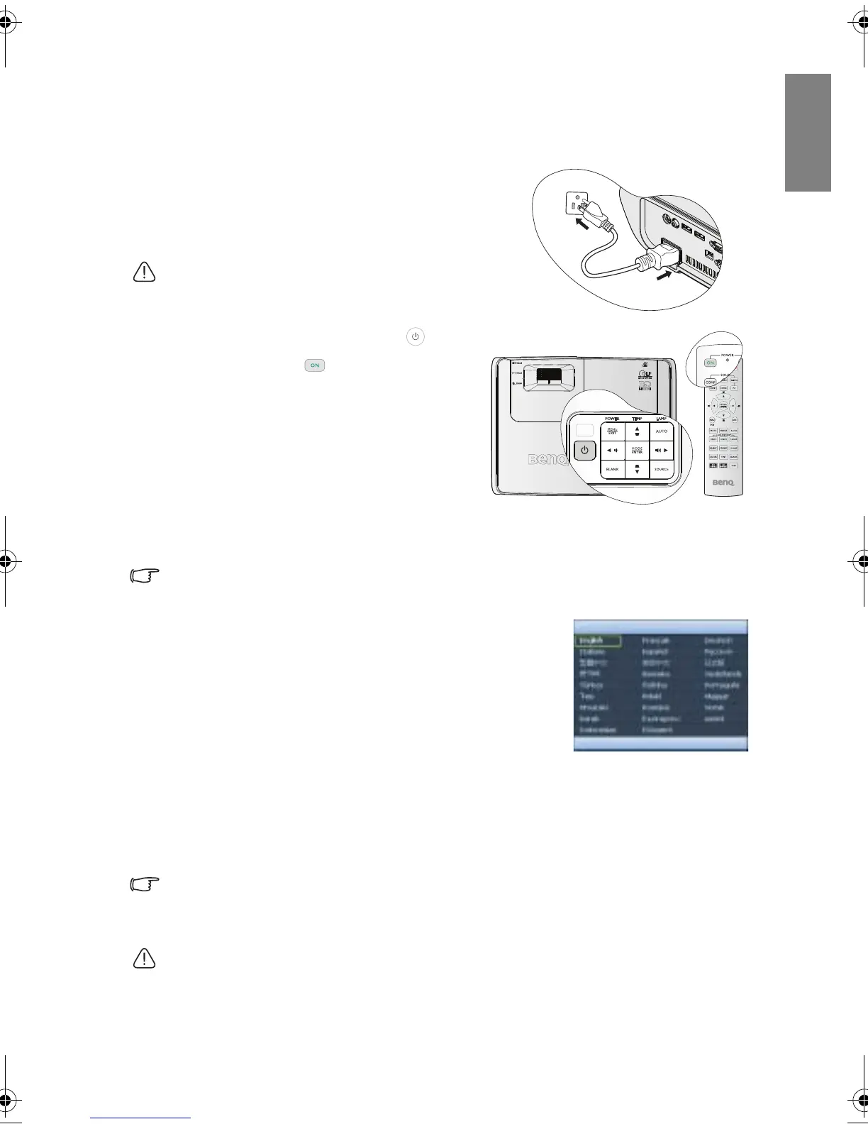 Starting up the projector
