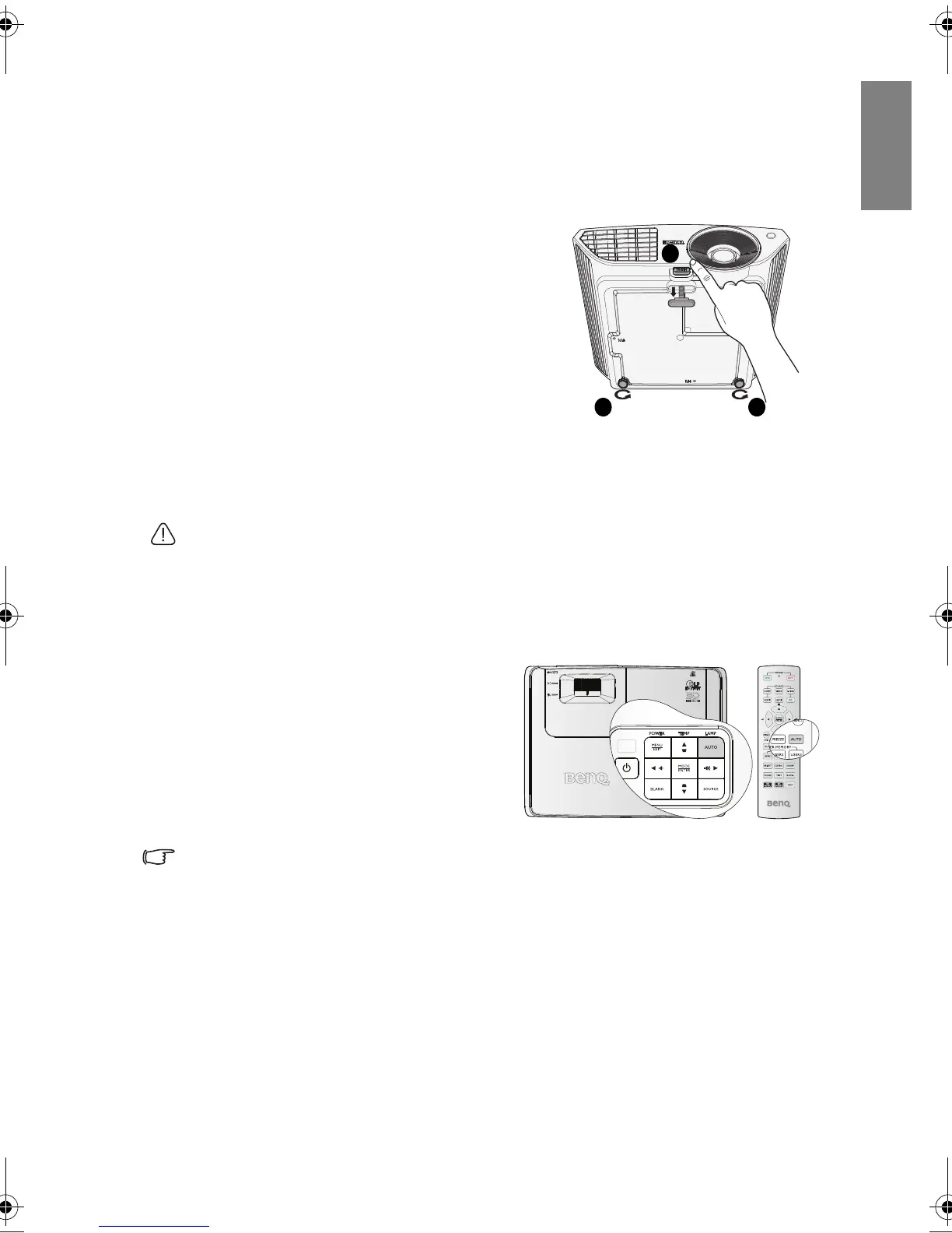 The projector is equipped with 1 quick-release adjuster foot and 2 rear adjuster feet. These