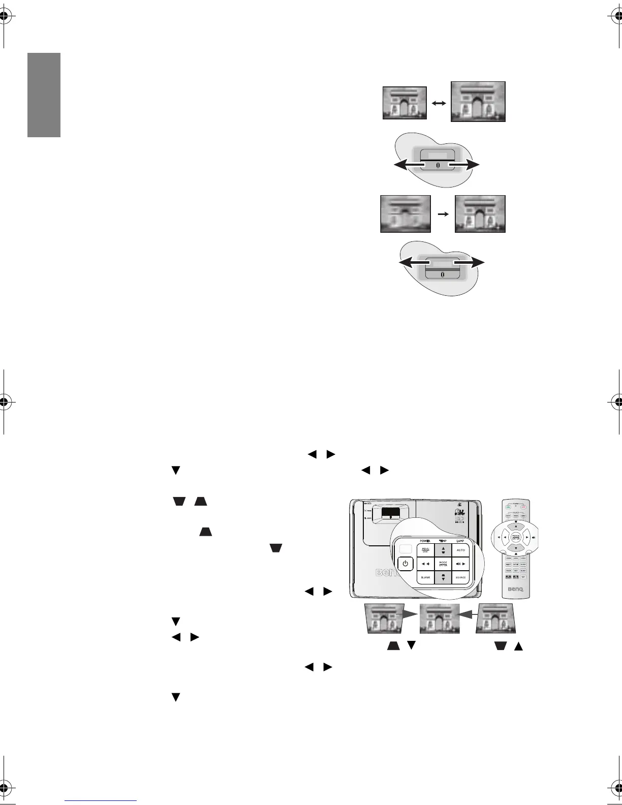 To correct this, besides adjusting the height of the projector, you can use Auto