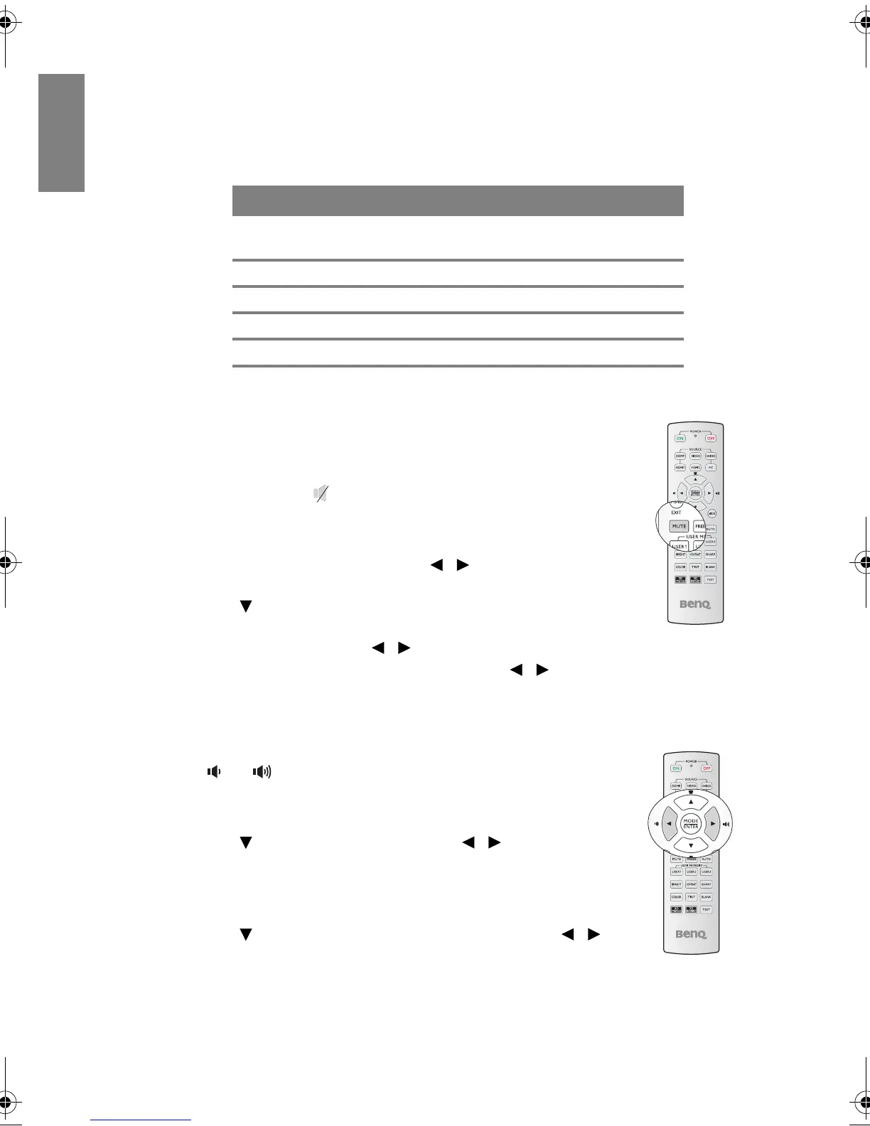 The sound adjustments made as below will have an effect on the projector speakers. Be sure