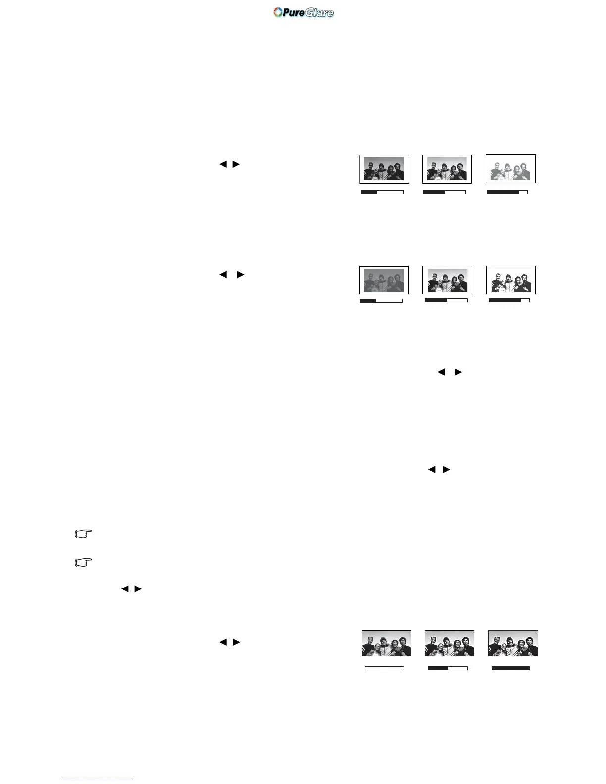 The Brightness, Color, Contrast, Tint functions can also be accessible by pressing BRIGHTNESS,
