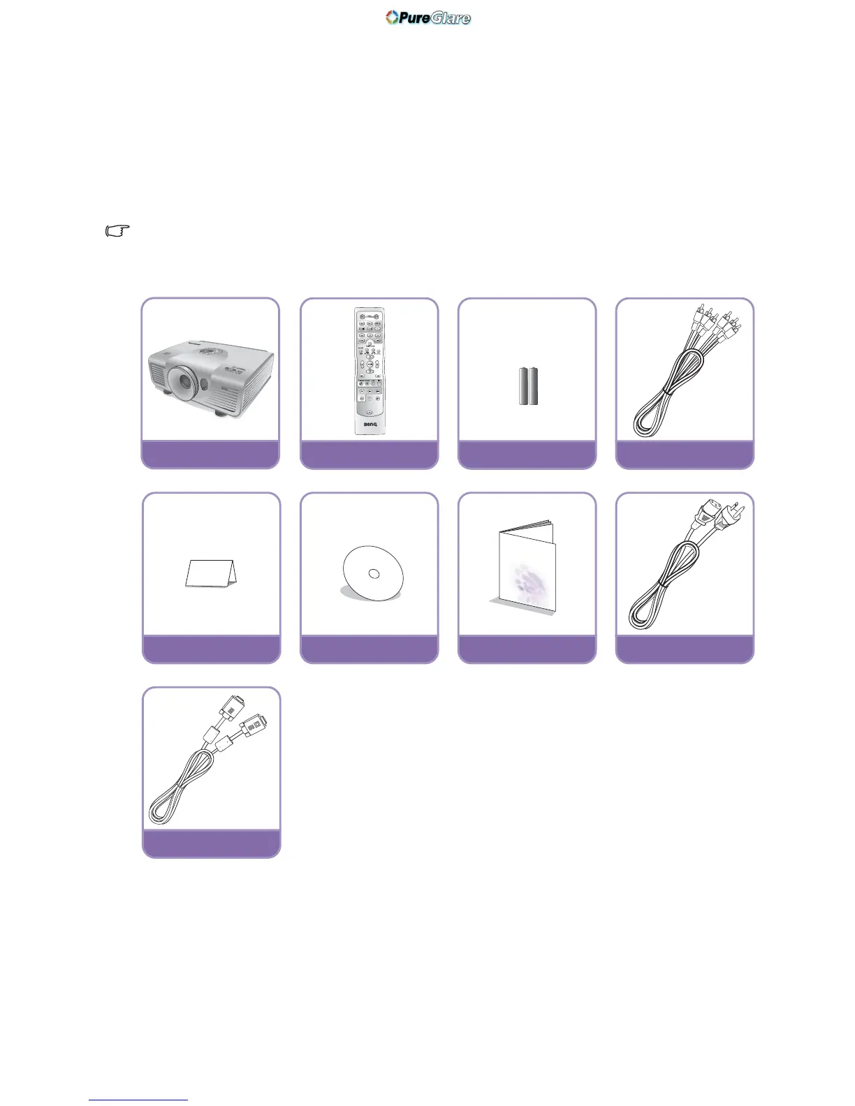 Carefully unpack and verify that you have the items below. Some of the items may not be available
