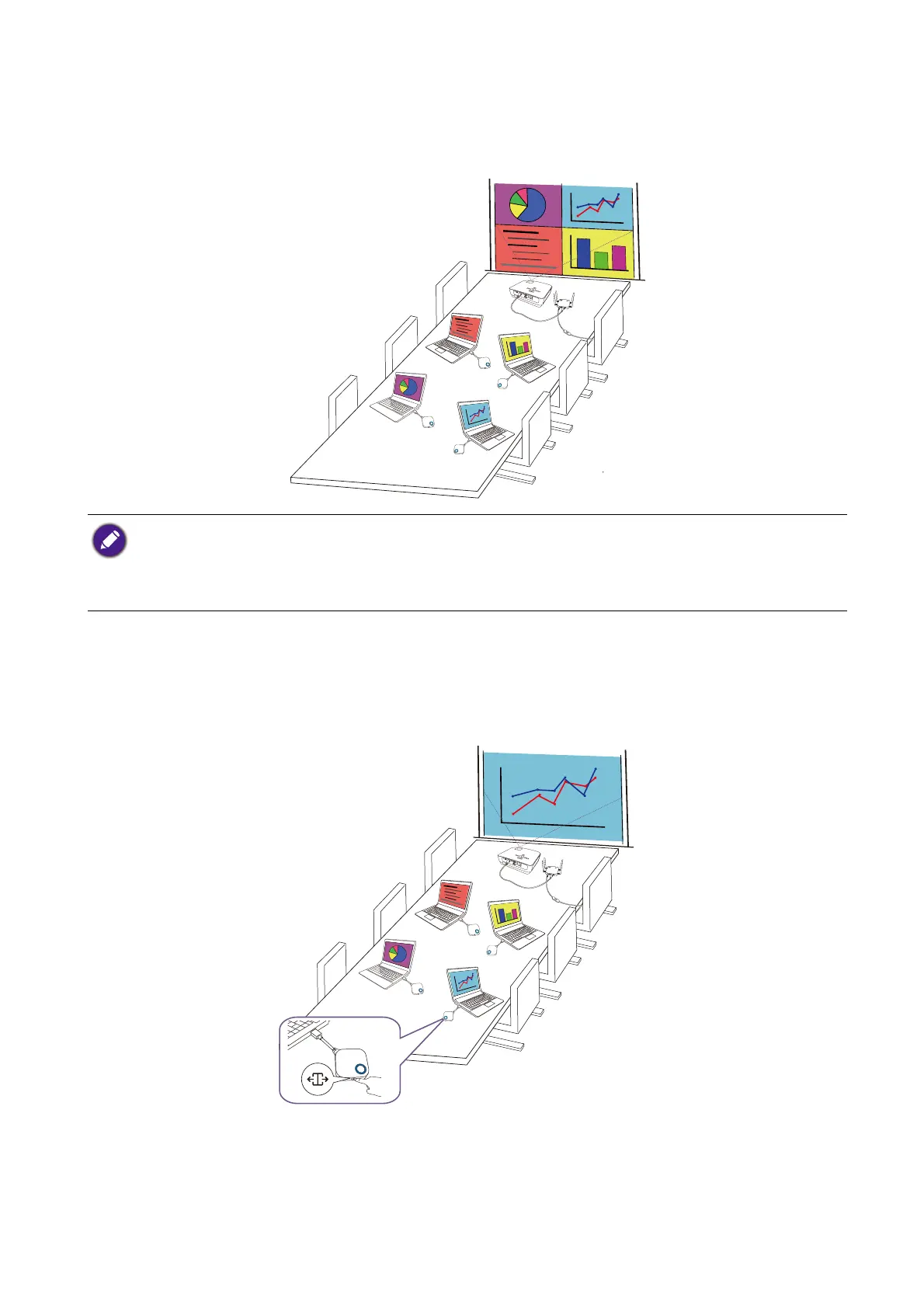 • Only up to 4 users are simultaneously supported in a split screen presentation.