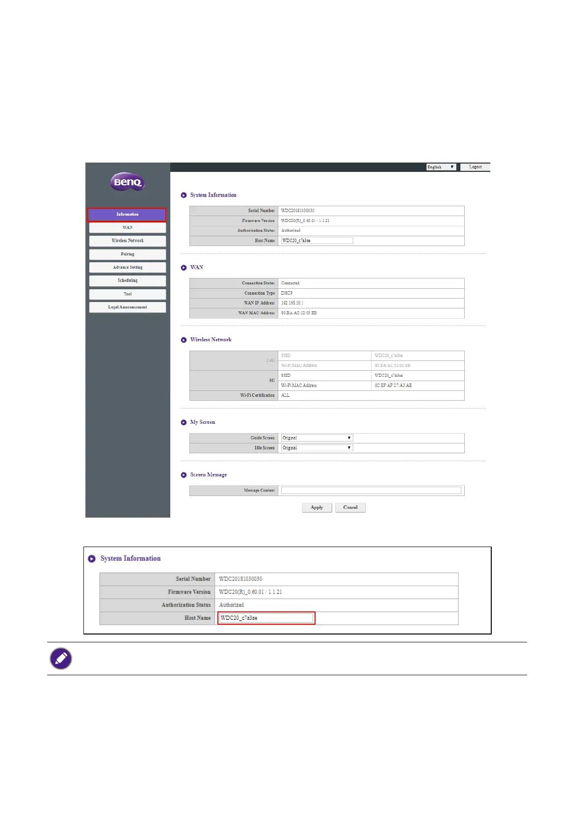 Click Information and you will see detailed information for System Information, WAN,
