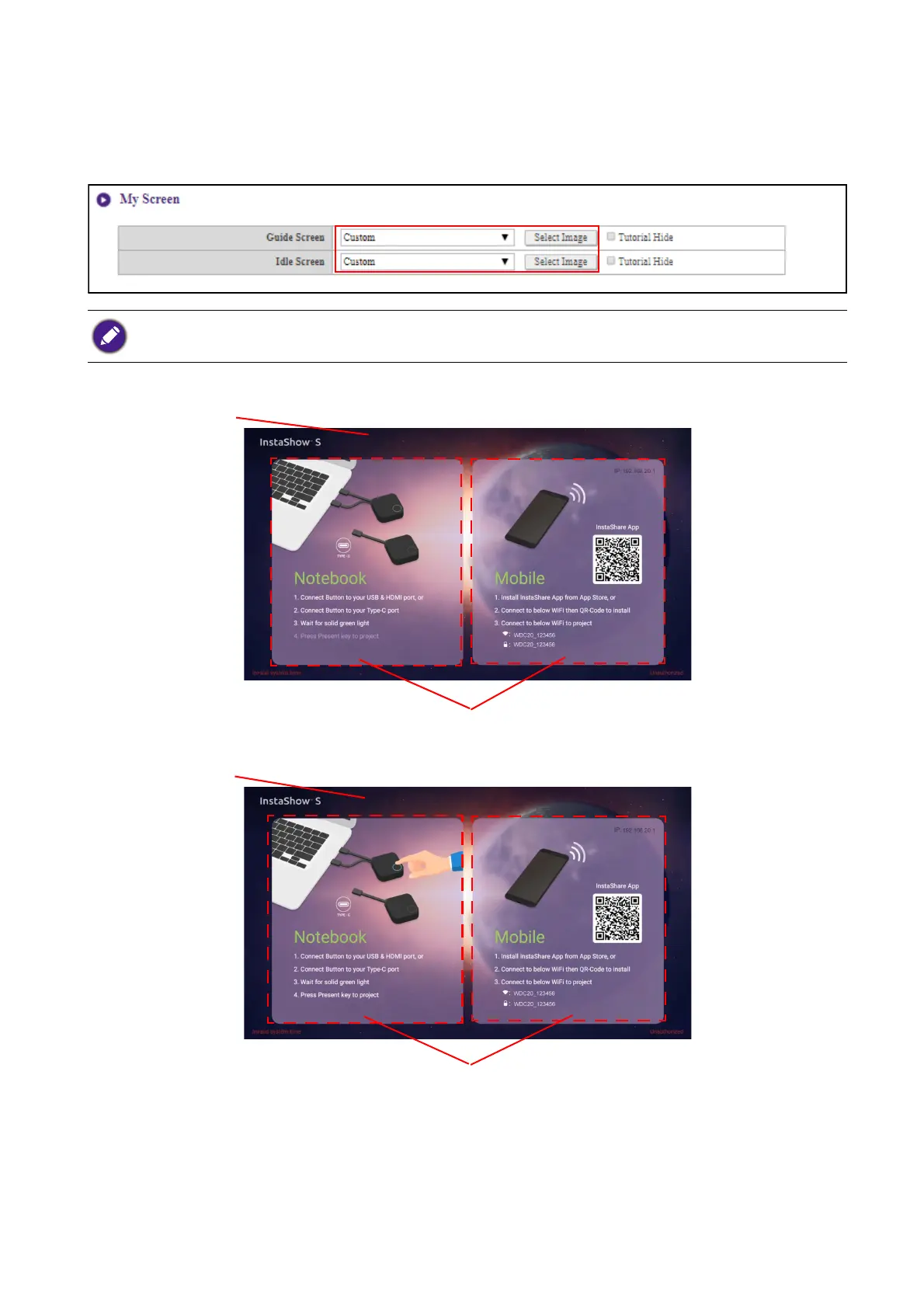 Custom in the Guide Screen or Idle Screen fields, then clicking the Select Image button that