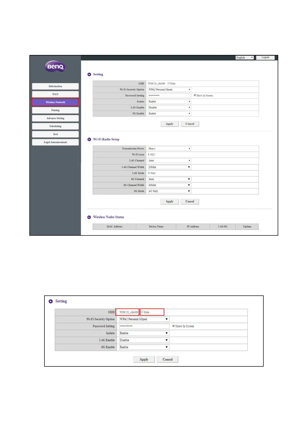Click Wireless Network and you will see the Setting, Wi-Fi Radio Setup, and Wireless