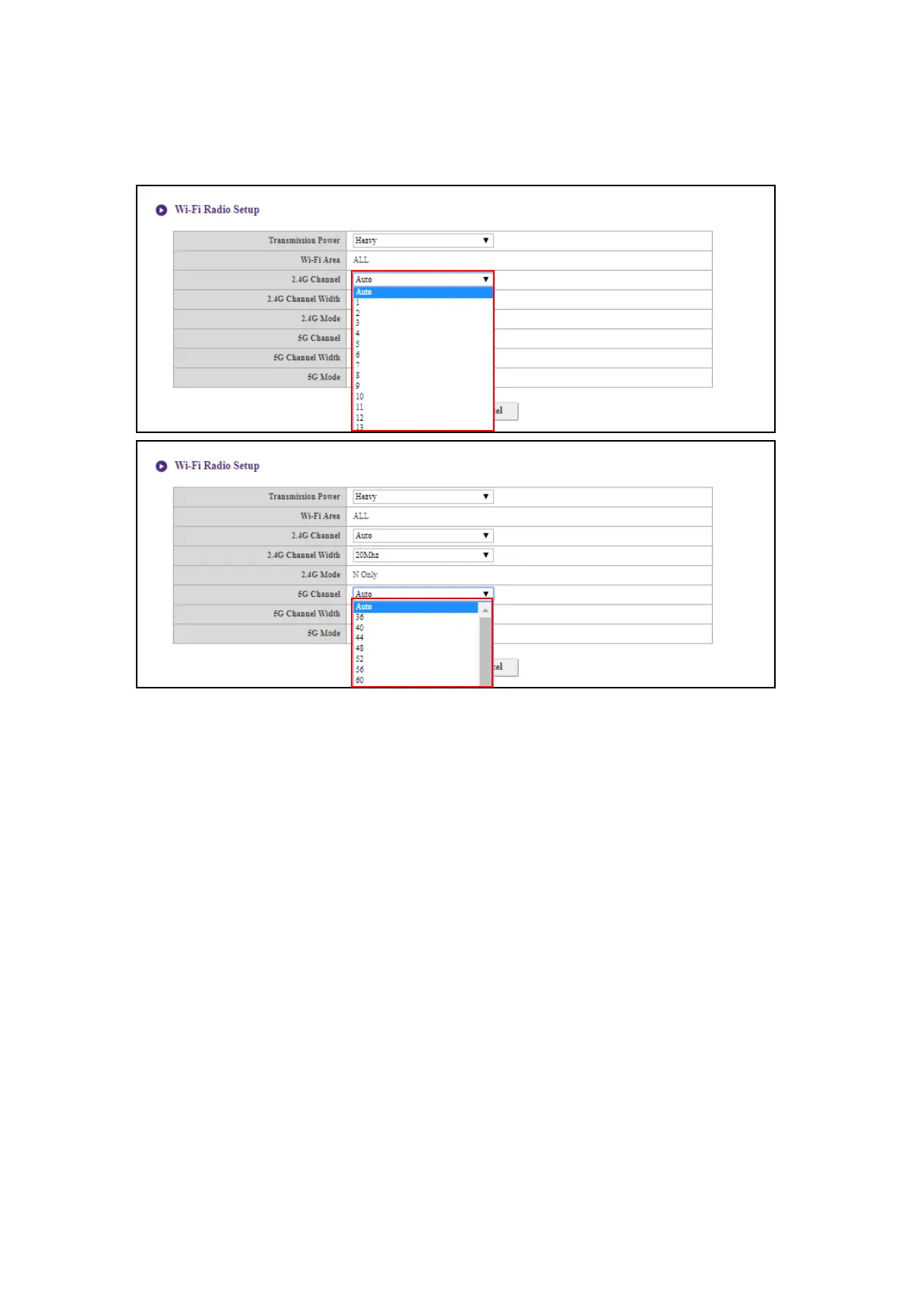 selecting Auto, or you can select a wireless channel manually. The default 2.4G Channel and 5G