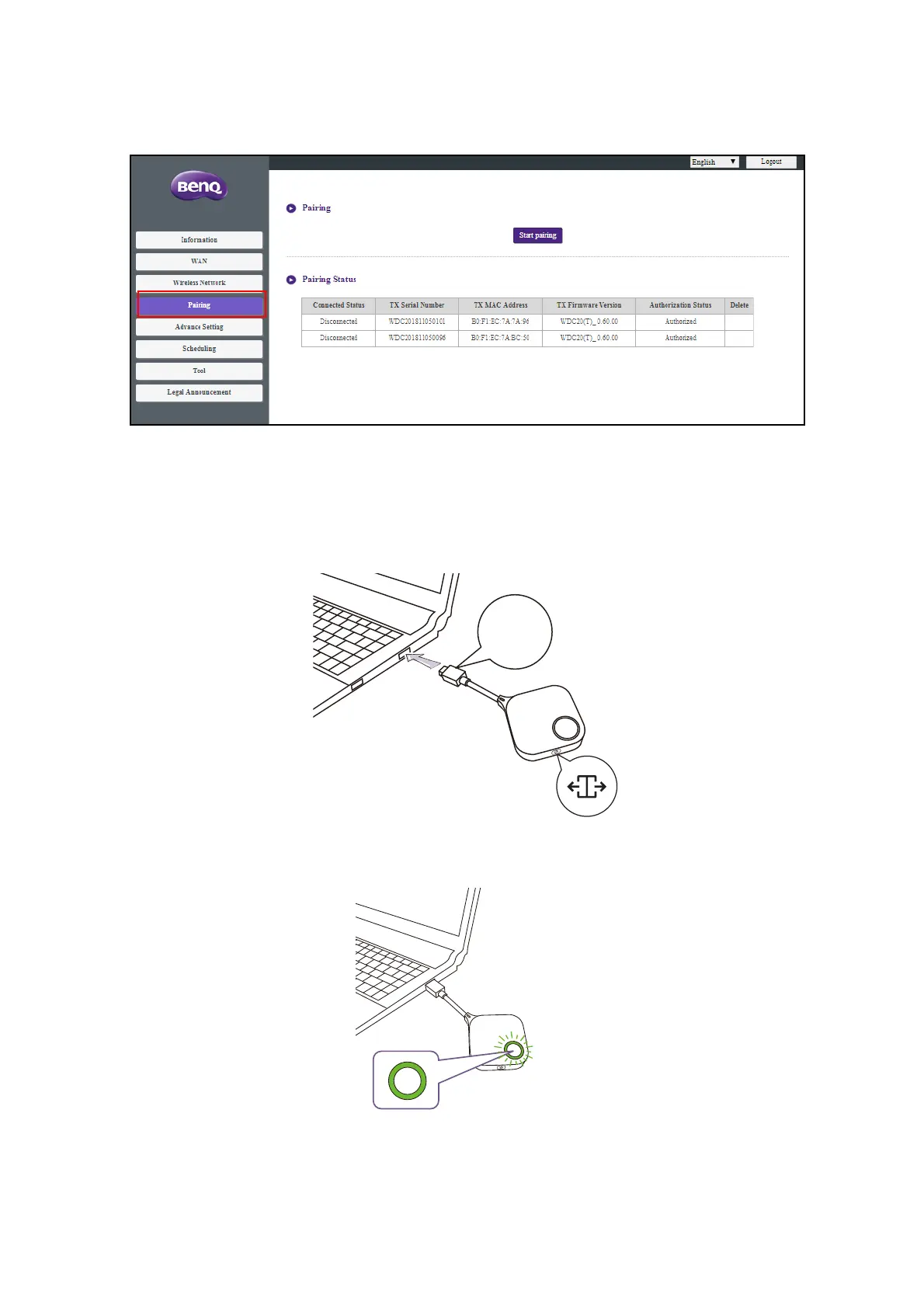 Click Pairing and you will see Pairing and Pairing Status.