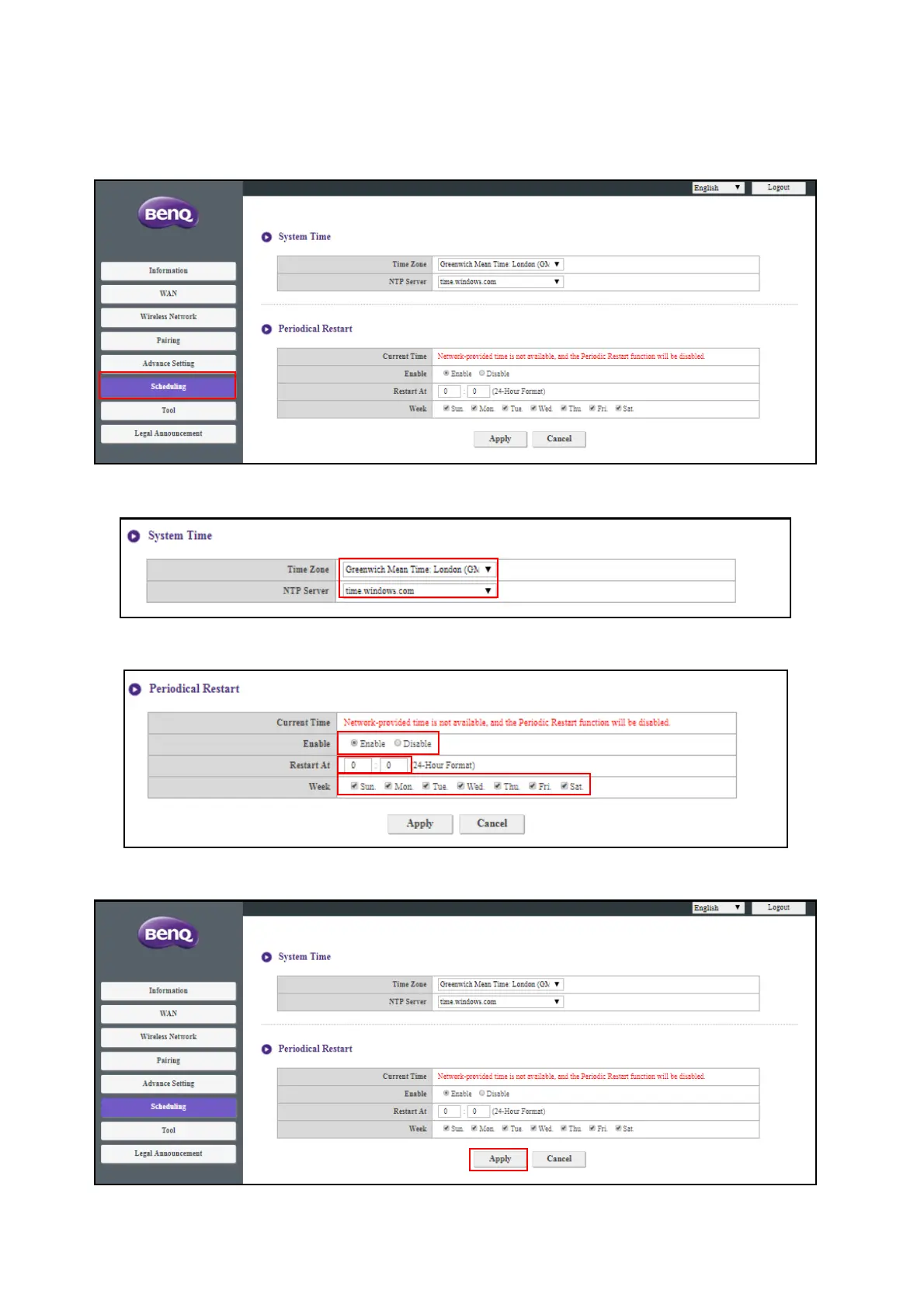 You can check Enable to set Periodical Restart. You can also set restart time and day.