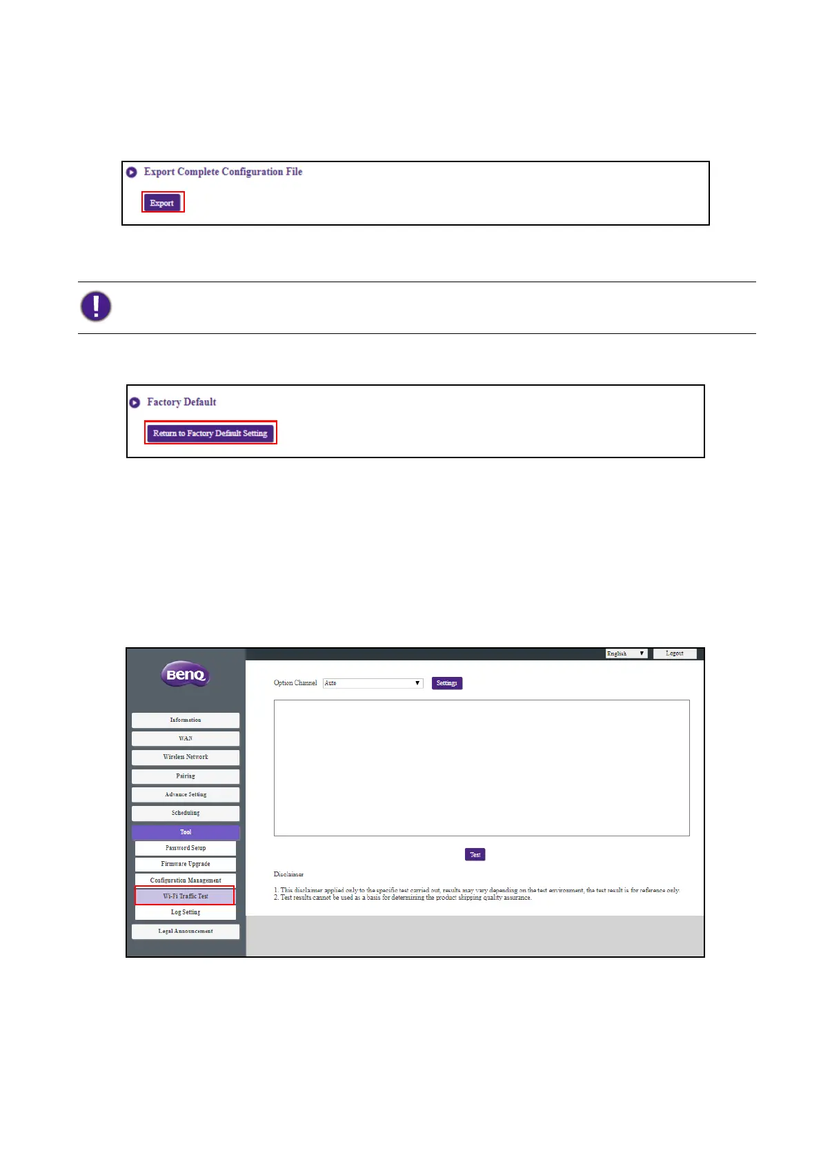 The Wi-Fi Traffic Test sub-menu allow you to test the speed of the connection between your Host
