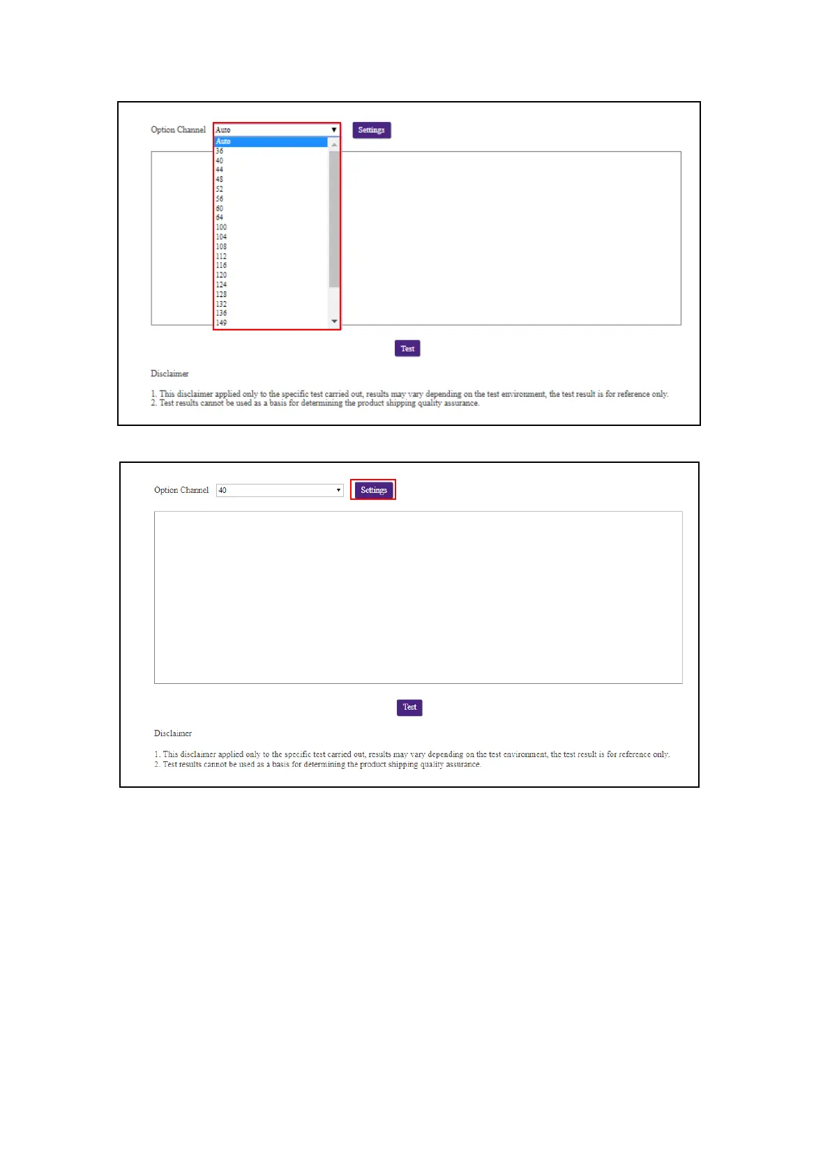 2. Click the Settings button to set the channel test.