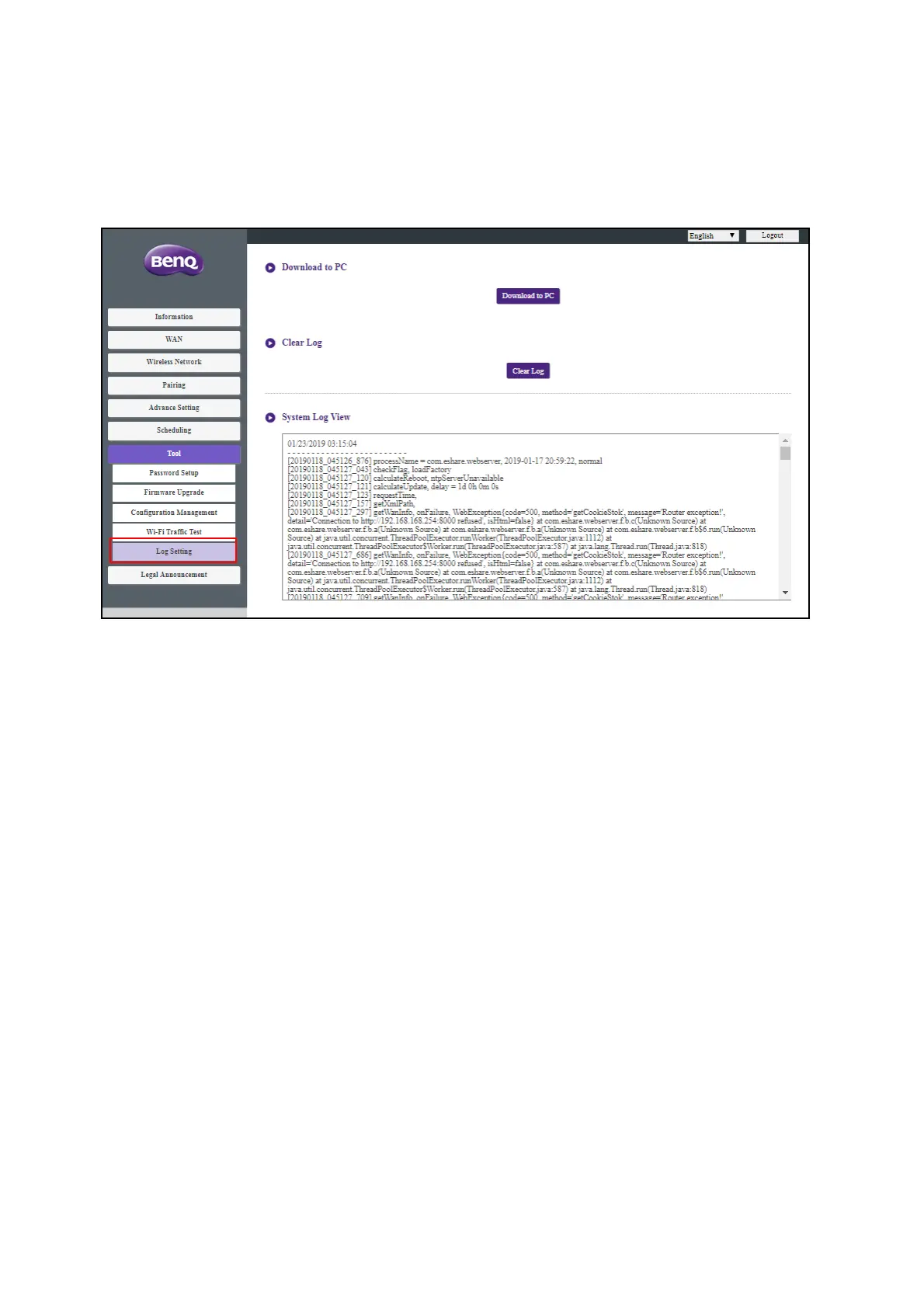 track errors or locate bugs. In the Log Setting menu, download the system log to your local