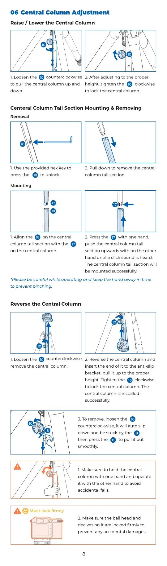 to lock the central column. The