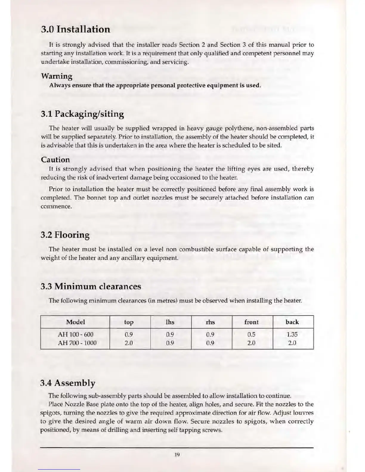 Prior to installation the heater