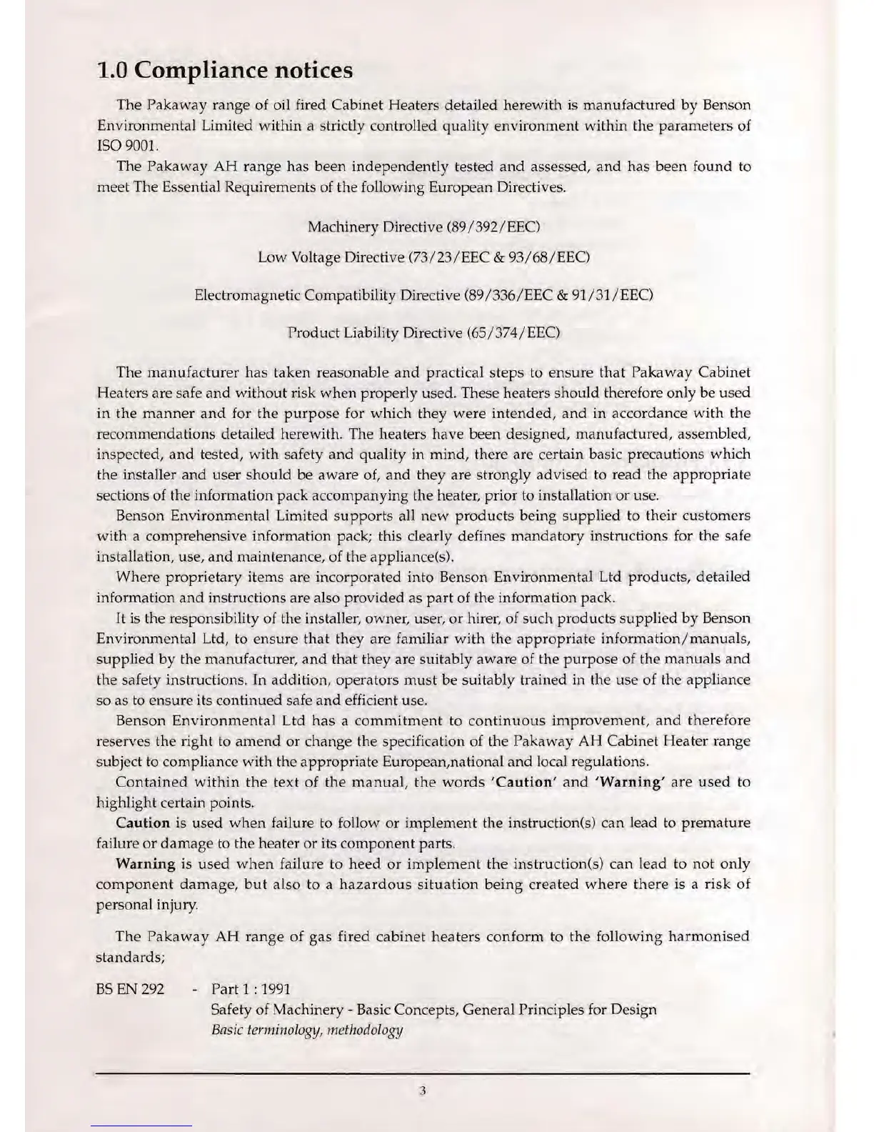 BENSON AH150 - 1 Compliance Notices