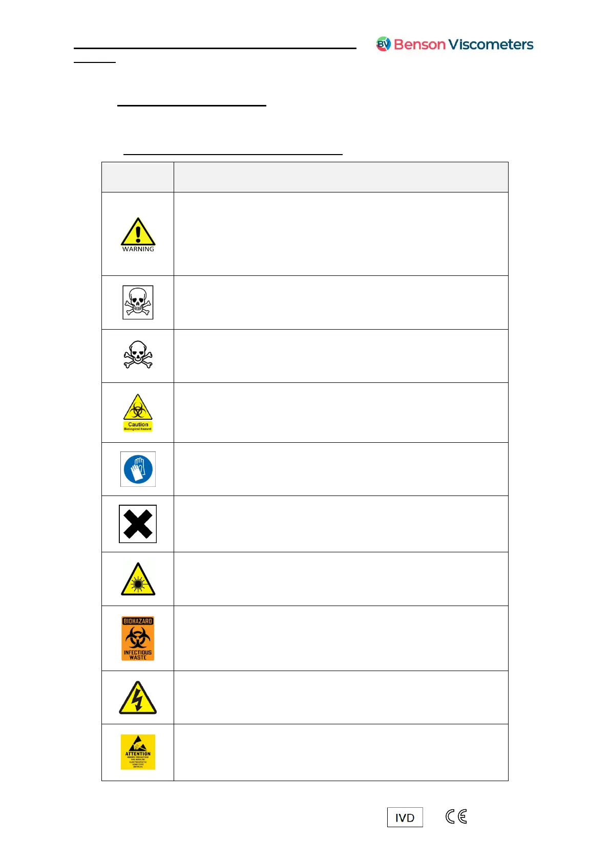 The following are recommendations for safe operating of the BV200 Viscometer. They should be