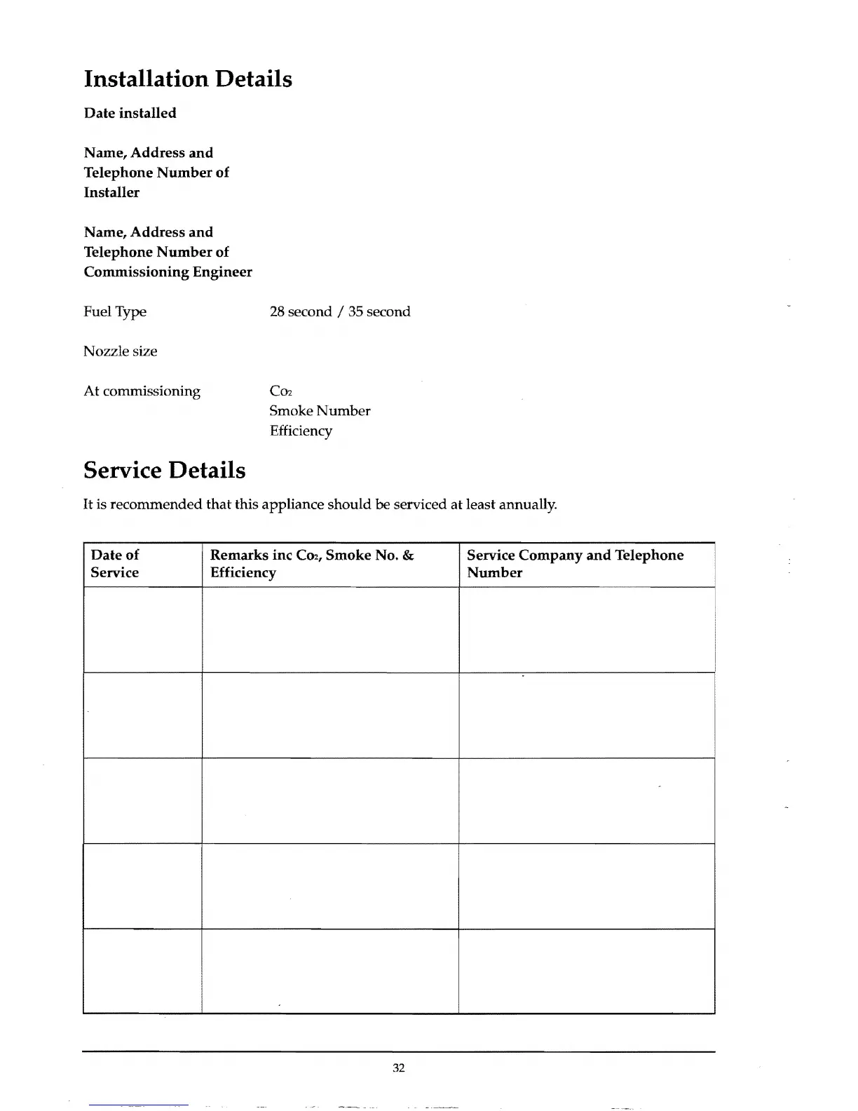 BENSON JETSTREME 4+ - Installation Details; Service Details