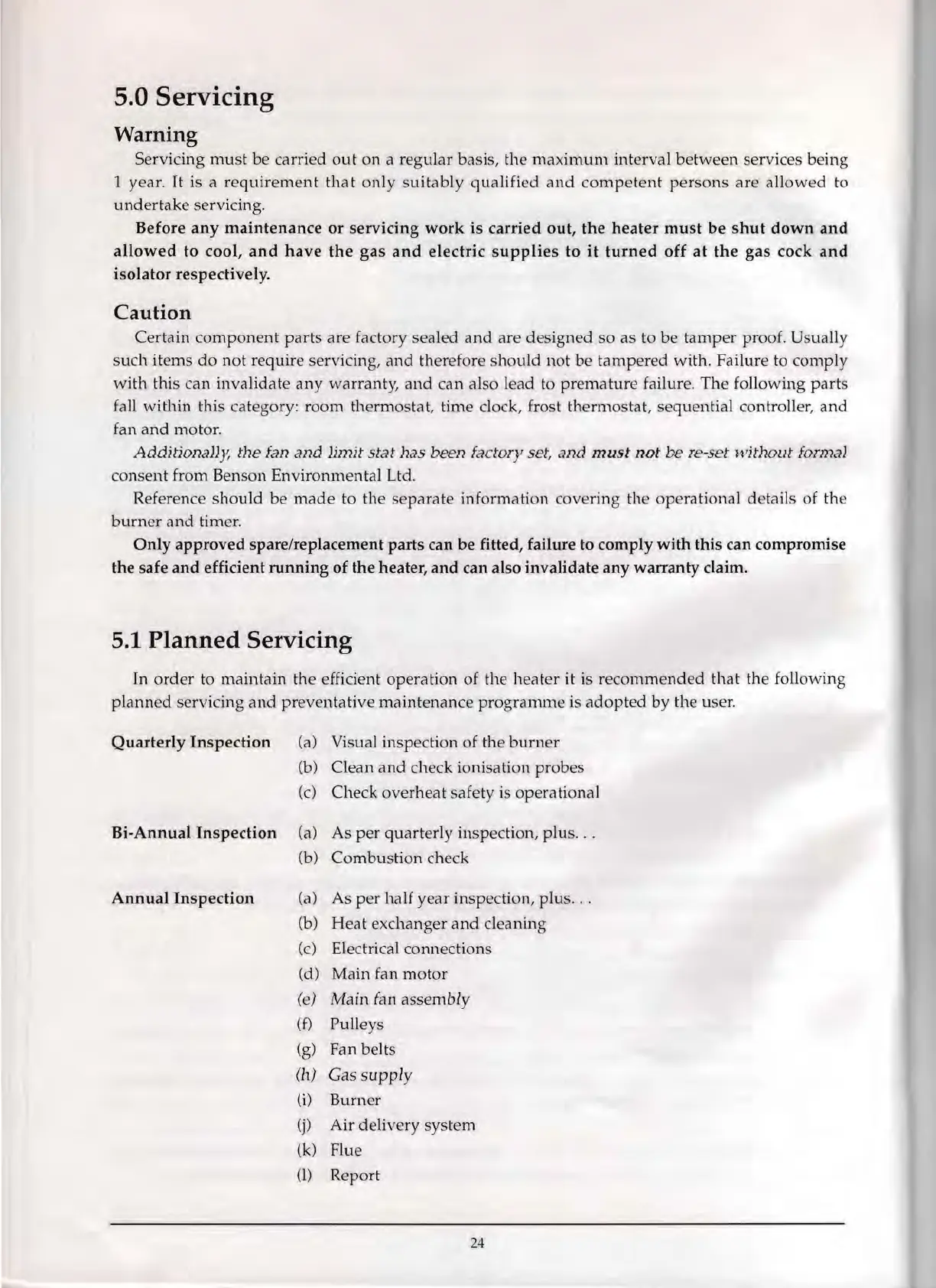 BENSON OLYMPIC WH - 5 Servicing; Planned Servicing