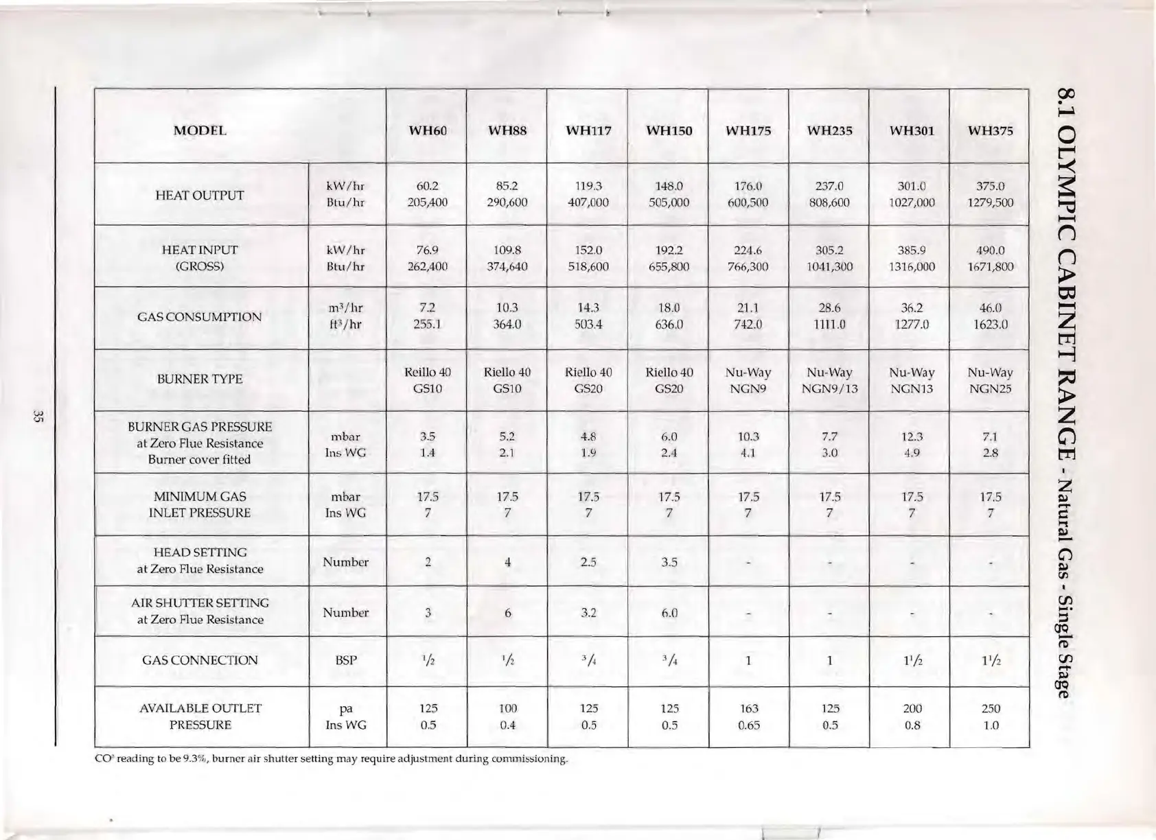 BENSON OLYMPIC WH - Technical Data - Olympic WH Models