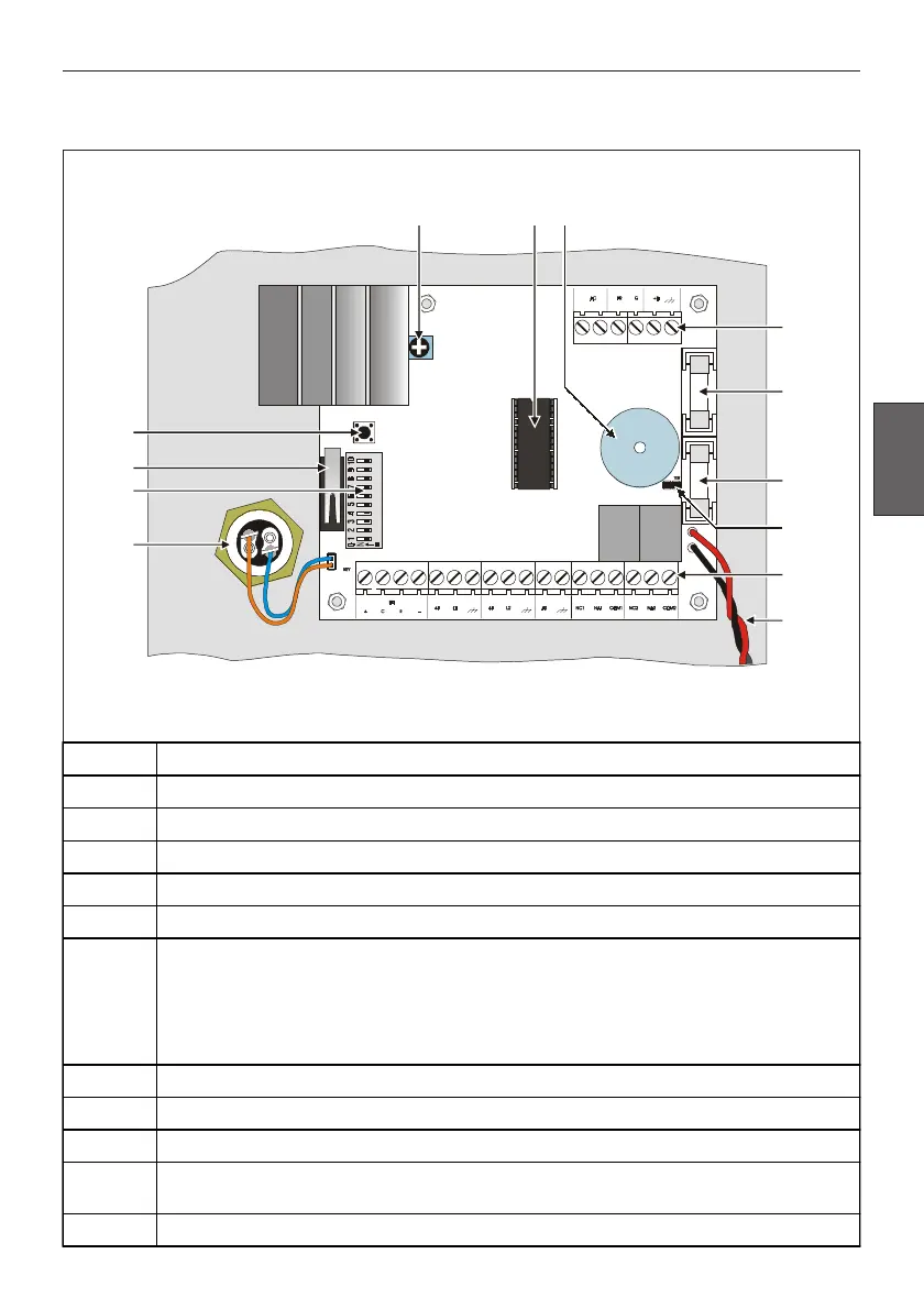 10 PROG button: Enrols BPI Bus devices; Enrols/Deletes Keys/Cards