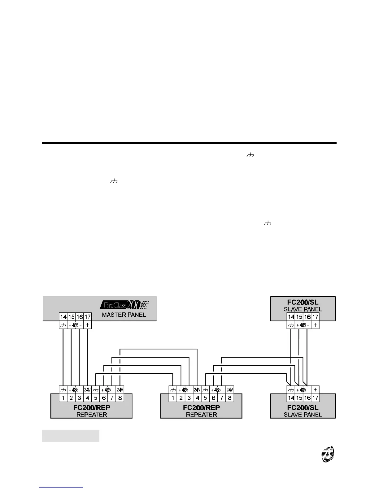 Figure 11 Wiring diagram of Repeater and Slave Panels connected to the RS485 network