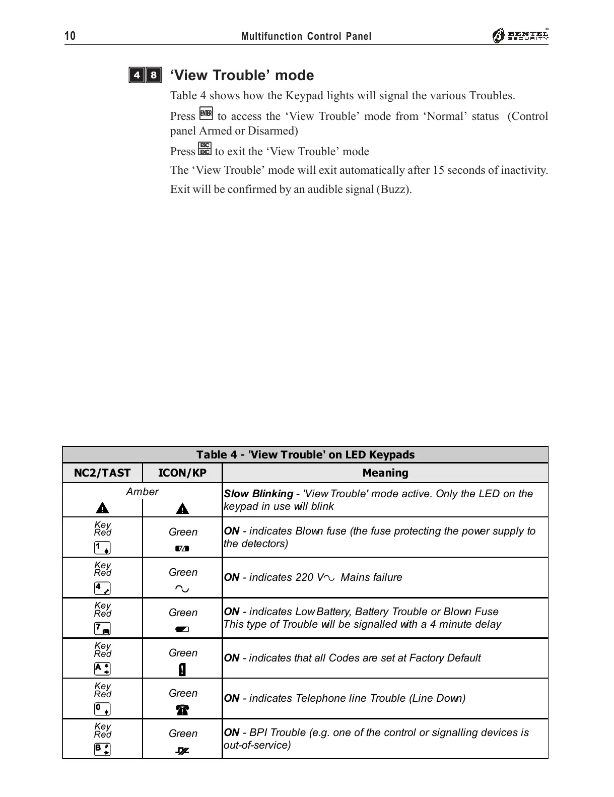 Table 4 - 'View Trouble' on LED Keypads
