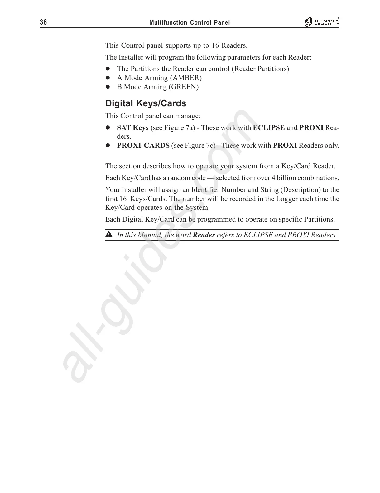 G In this Manual, the word Reader refers to ECLIPSE and PROXI Readers.