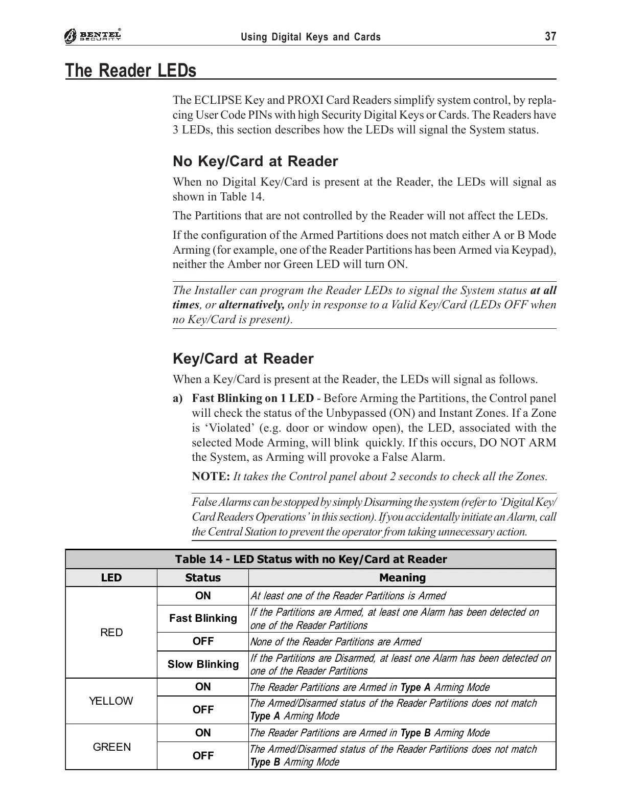 times, or alternatively, only in response to a Valid Key/Card (LEDs OFF when