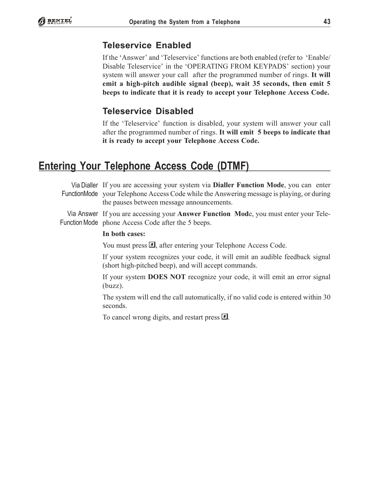 If you are accessing your Answer Function Mode, you must enter your Tele-