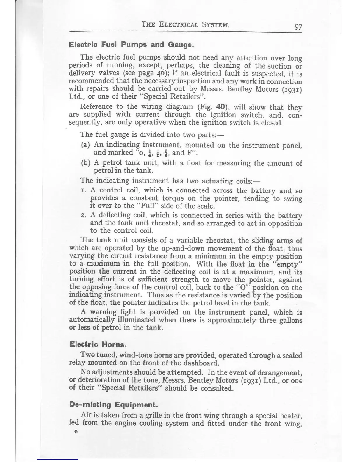 Bentley R Type - Electric Fuel Pumps and Gauge; De-misting Equipment