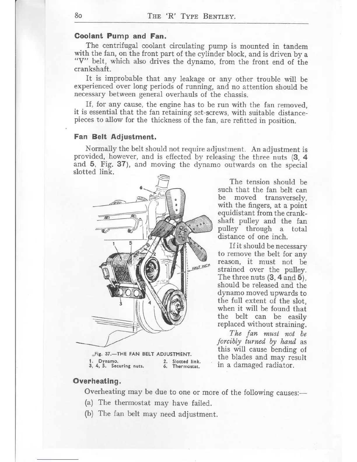 Bentley R Type - Coolant Pump and Fan; Fan Belt Adjustment; Overheating